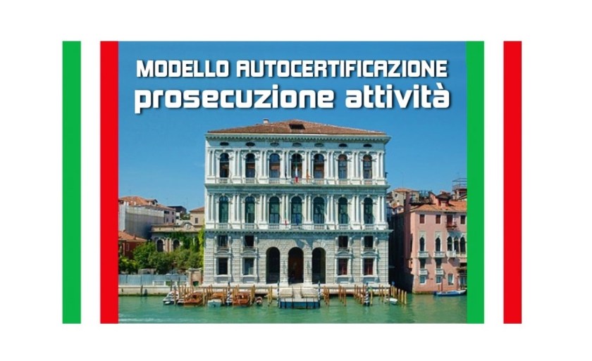 La Prefettura di Venezia ha pubblicato il modello di autodichiarazione da presentare al Prefetto per il proseguimento delle attività produttive ai sensi del DPCM 22 marzo 2020. File da compilare e inviare a protocollo.prefve@pec.interno.it con PEC.