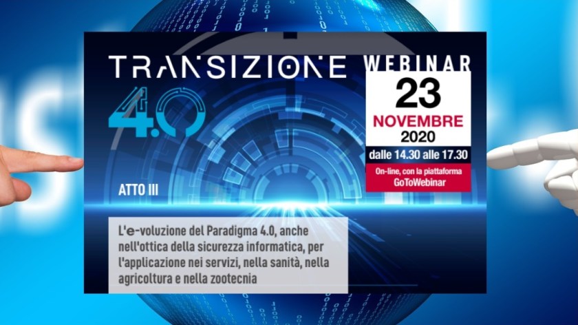 Un’occasione unica per approfondire le opportunità dell’e-voluzione del Paradigma 4.0, anche nell’ottica della sicurezza informatica, per l’applicazione nei servizi, nella sanità, nell’agricoltura e nella zootecnica con professionisti del settore. L’appuntamento sarà lunedì 23 novembre dalle 14.30 alle ore 17.30 con il webinar “Transizione 4.0 Atto III”, organizzato dall’Ordine Ingegneri di Venezia in collaborazione con Fondazione Ingegneri Veneziani e Federazione FOIV e con il prestigioso patrocinio della Regione del Veneto, di UNI e Uninfo, Confindustria Veneto, Team 4.0 e Lean 4 Digital.