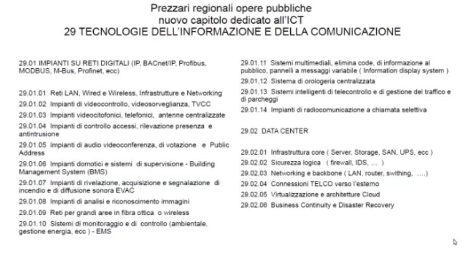 Poi a risposta delle segnalazioni dell’Ingegnere Lo Torto è stata prodotta la slide sulla bozza del prezziario dell’ICT.