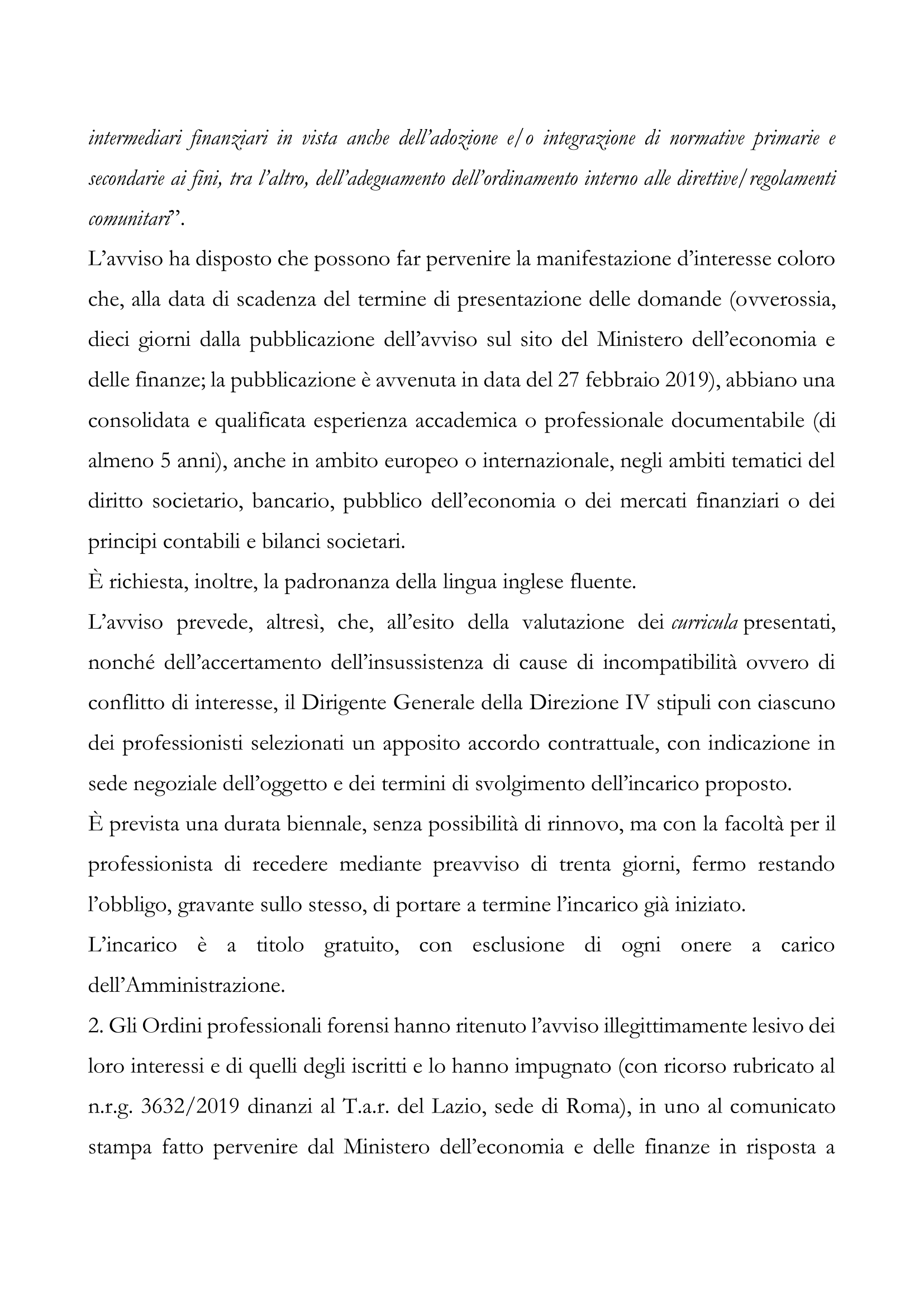 L’avviso è stato ritenuto illegittimamente lesivo dei loro interessi e di quelli degli iscritti agli Ordini ed è stato impugnato. Il TAR con sentenza n. 11410/2019 ha respinto il ricorso in toto perché: