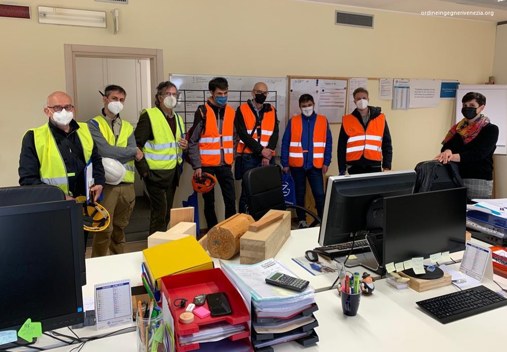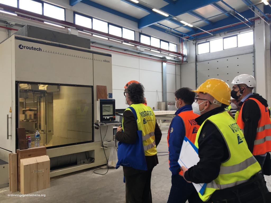 Assistiti dai tecnologi del legno Dott. Carlo e Dott.ssa Laura Zennaro, gli ingegneri ospiti hanno inizialmente visitato lo studio tecnico interno, dove il team di architetti, geometri e ingegneri altamente specializzati gestisce quotidianamente la fase progettuale interfacciandosi con i referenti tecnici di cantiere designati dal cliente, al fine di garantire la perfetta realizzazione dell’opera progettata.