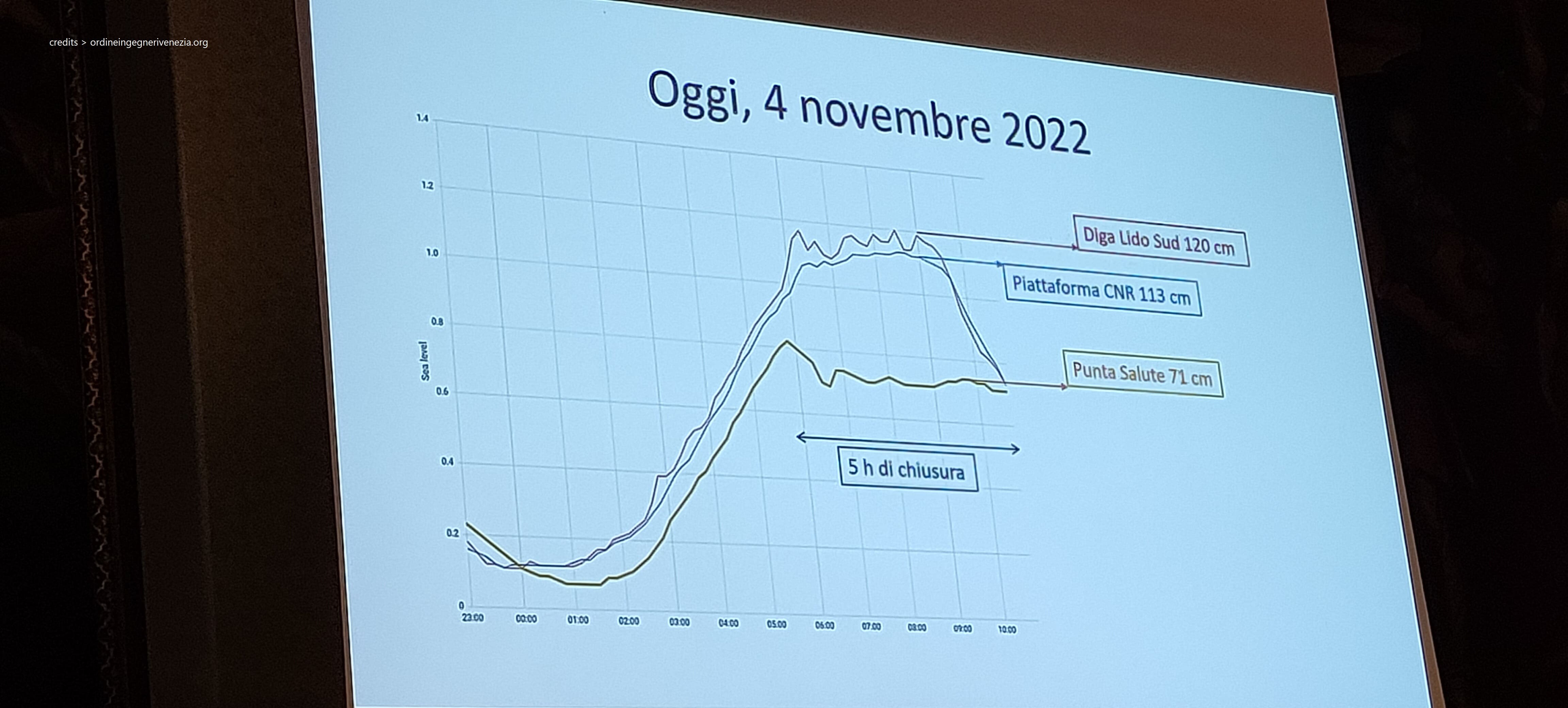 Pierpaolo Campostrini ha ricordato che, come previsto dalla Legge speciale per Venezia, i fattori di protezione della città si devono muovere su tre assi: la salvaguardia fisica, quella ambientale e quella socio-economica. “La salvaguardia fisica è oggi ottenuta, come vediamo proprio oggi in occasione del primo innalzamento della stagione del Mose, ma non è completa: mancano altri interventi, come l’innalzamento di alcune parti della città. Se guardiamo l’intero bacino, assistiamo alla erosione progressiva della Laguna e non abbiamo ancora deciso come intervenire per arrestare questo fenomeno – di fronte al degrado ambientale, il tempo non è un fattore ininfluente. Se poi guardiamo alla salvaguardia socio-economica, molte opere devono essere ancora realizzate, fra cui le conche di navigazione a supporto del Porto“.