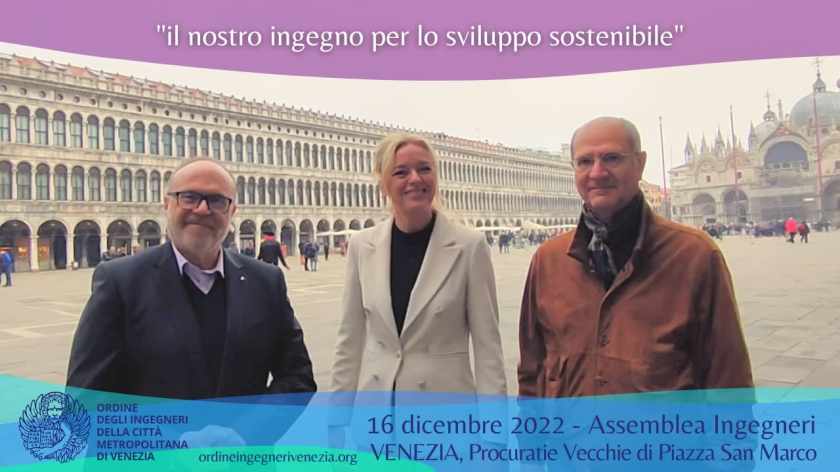 Nel video l’ing. Mariano Carraro, Presidente dell’Ordine Ingegneri Venezia, l’ing. Alessandra Grosso e l’ing. Sandro Boato, Presidente del Collegio Ingegneri Venezia.