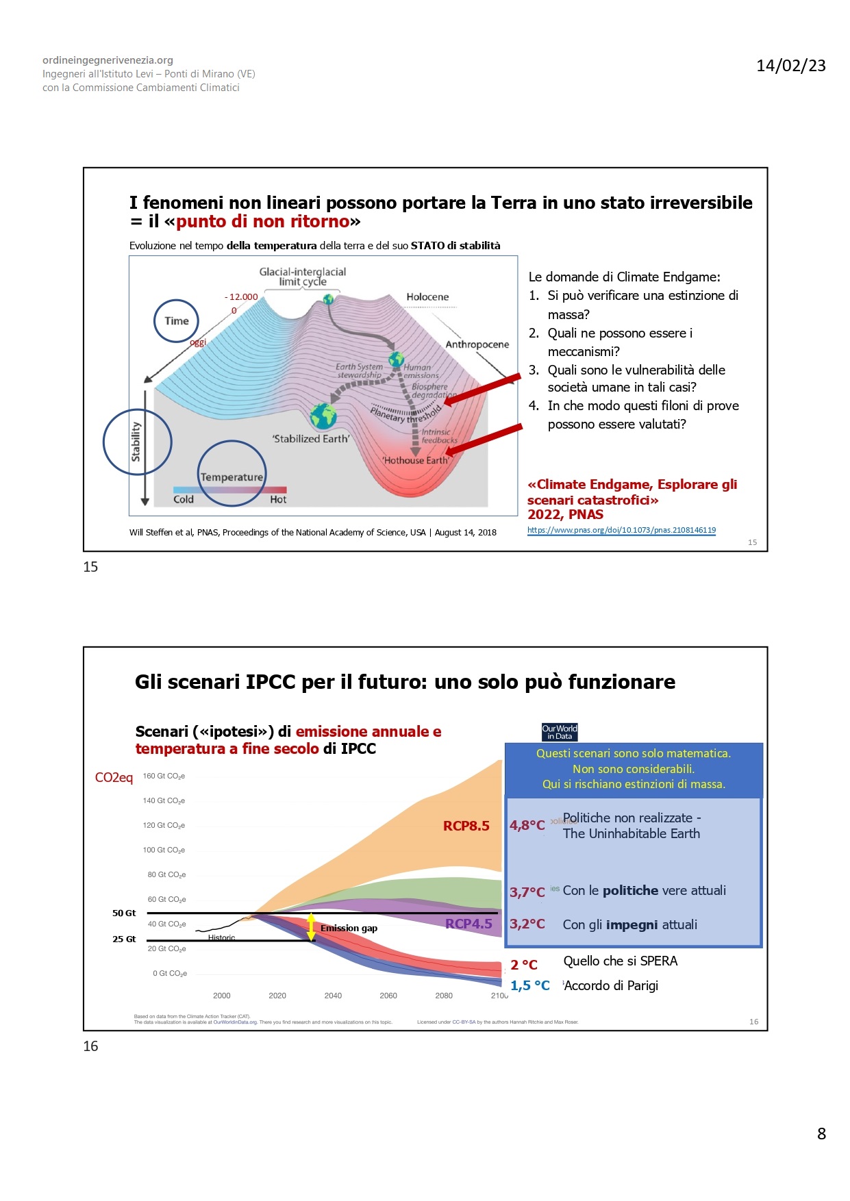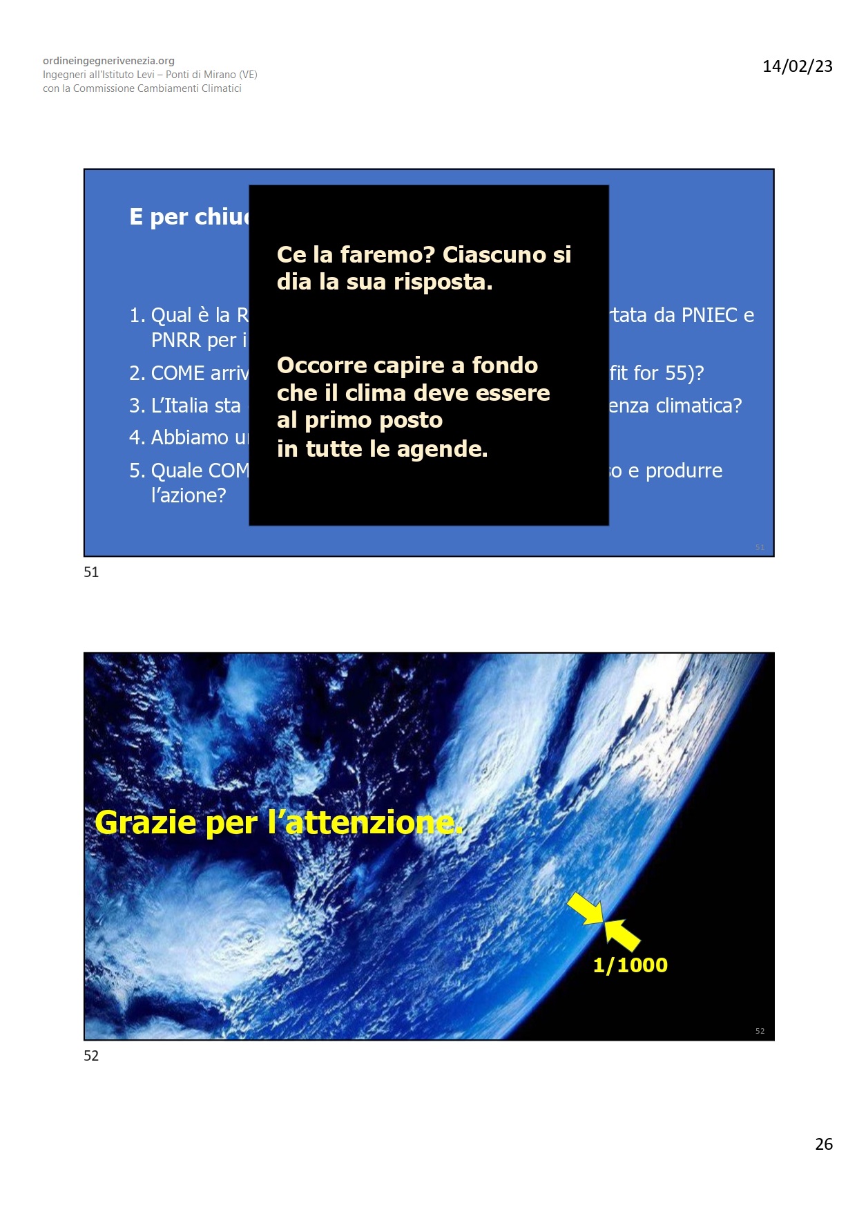 Ingegneri Componenti della Commissione Cambiamenti Climatici: Sandro Boato, Sebastiano Carrer, Giovanni Cecconi, Nello De Giulio, Giancarlo Gusmaroli, Alberto Iaderosa, Vera Manenti, Marino Mazzon, Angela Mejorin, Osvaldo Pasqual, Mauro Roglieri, Antonio Rusconi, Italo Saccardo, Riccardo Tolomio.