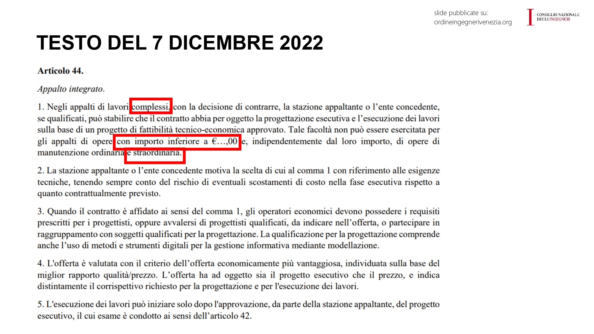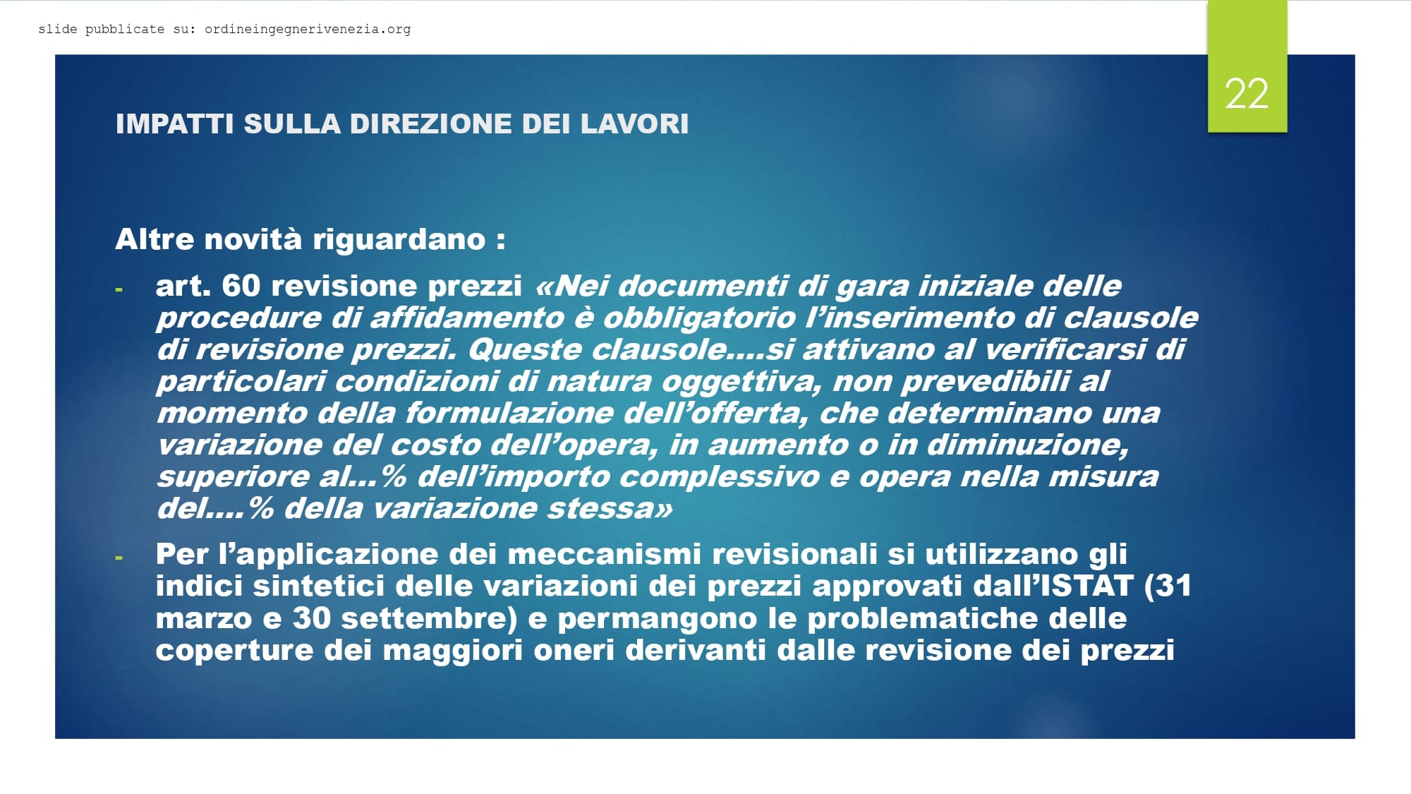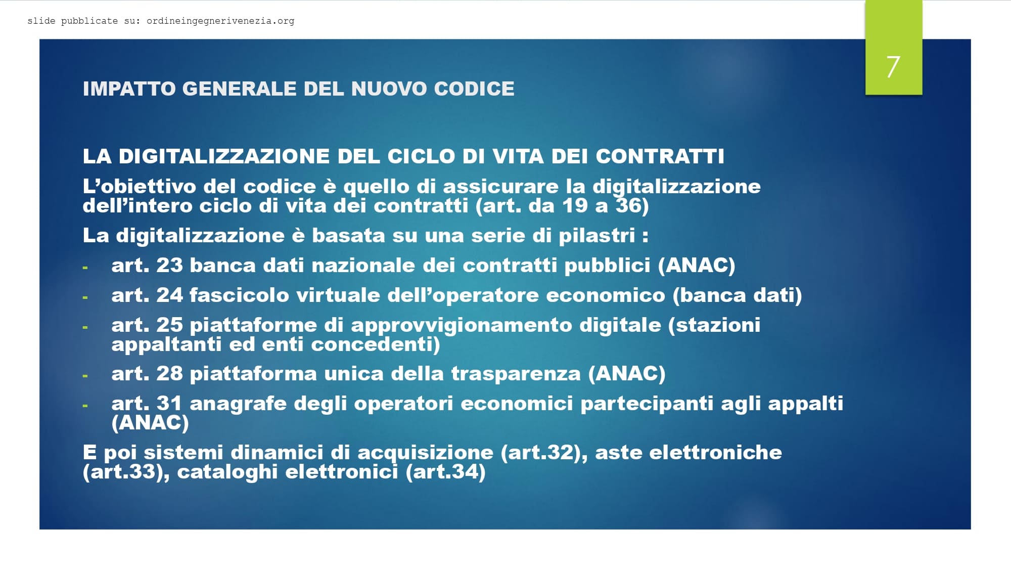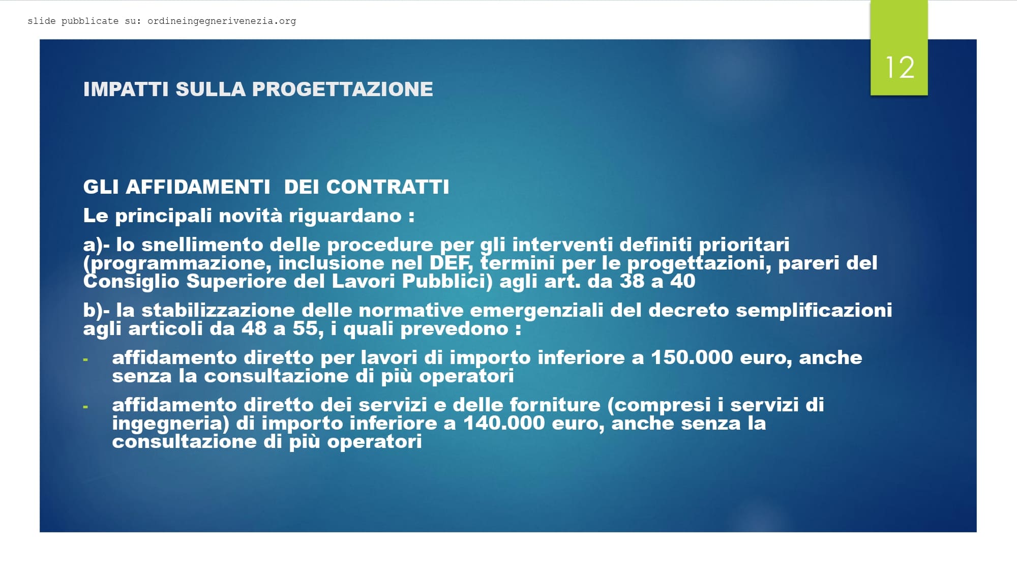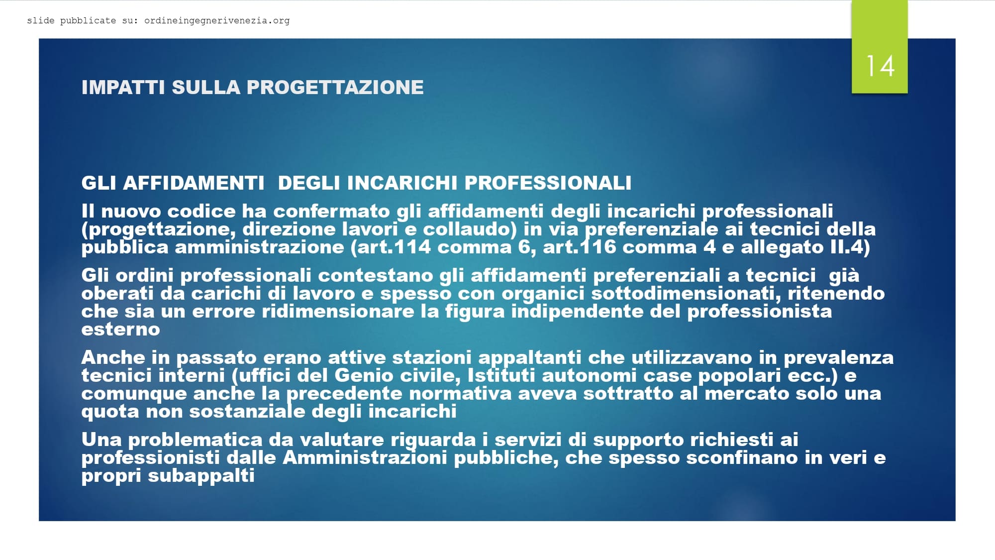 Proponiamo le slide (in file pdf e galleria immagini) con un primo video di sintesi del Convegno sul Nuovo Codice dei Contratti Pubblici, organizzato il 10 marzo 2023 dall’Ordine Ingegneri Venezia insieme al Collegio Ingegneri Venezia e la Fondazione Ingegneri Veneziani.