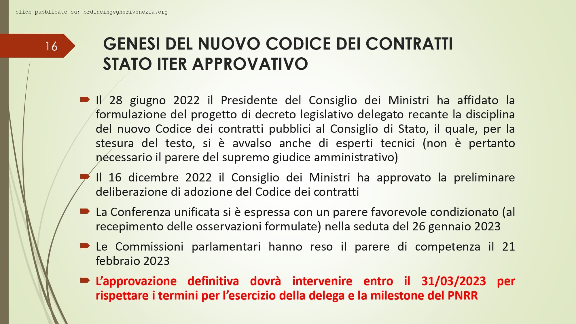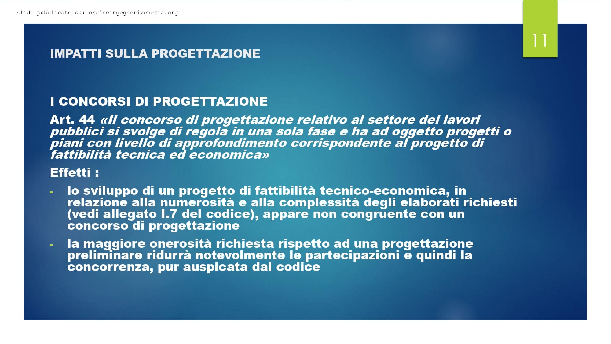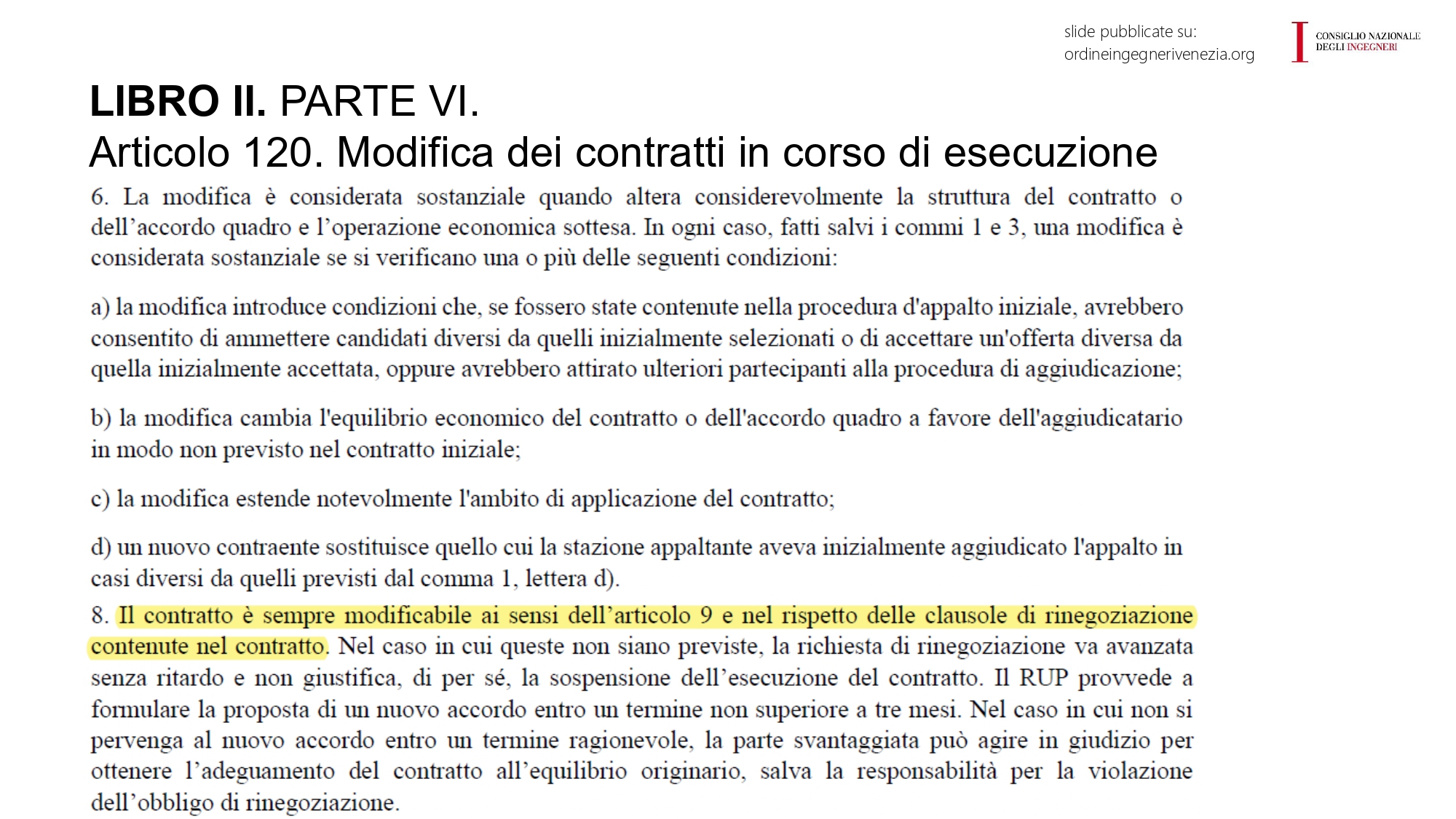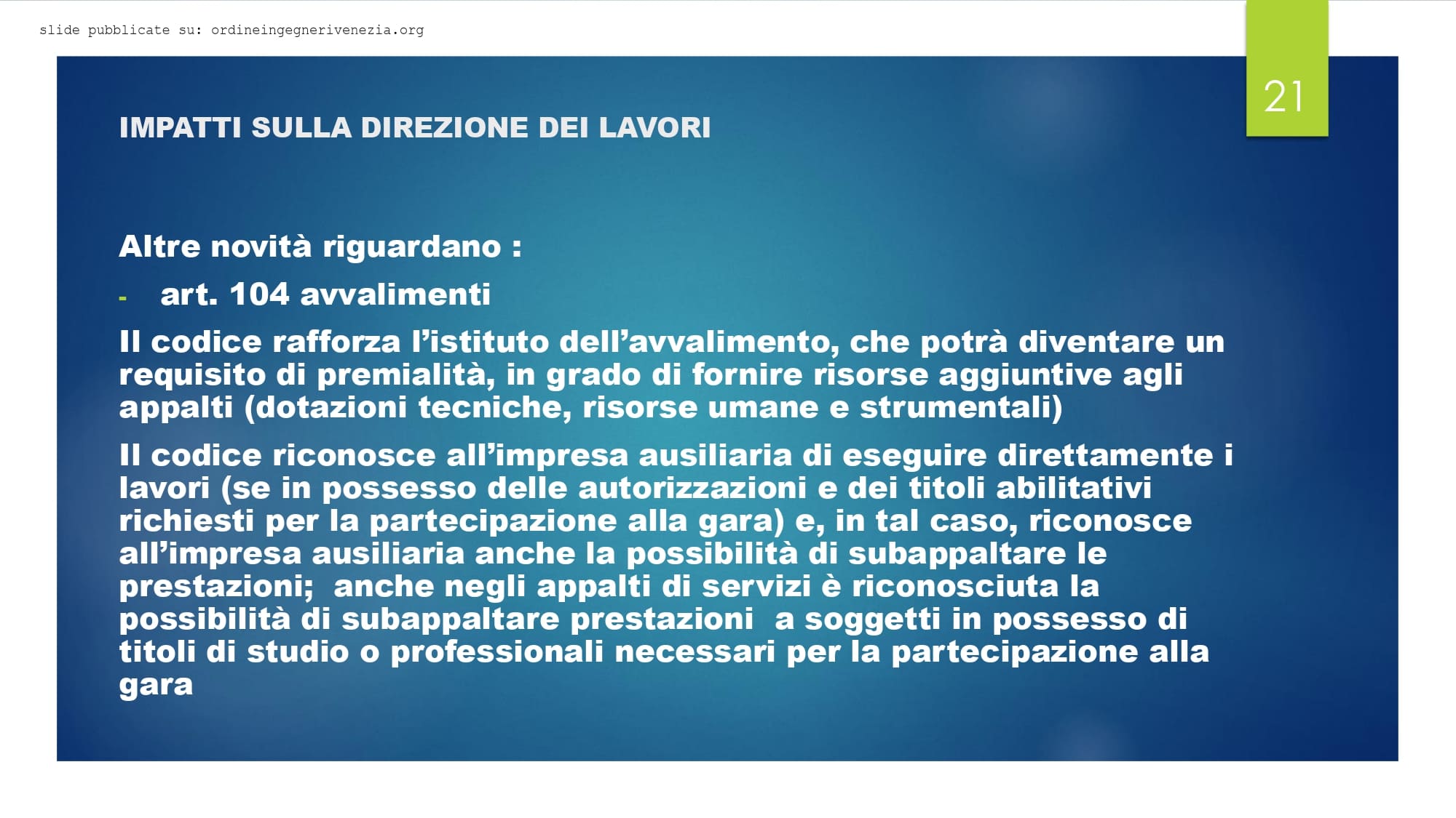 Proponiamo le slide (in file pdf e galleria immagini) con un primo video di sintesi del Convegno sul Nuovo Codice dei Contratti Pubblici, organizzato il 10 marzo 2023 dall’Ordine Ingegneri Venezia insieme al Collegio Ingegneri Venezia e la Fondazione Ingegneri Veneziani.