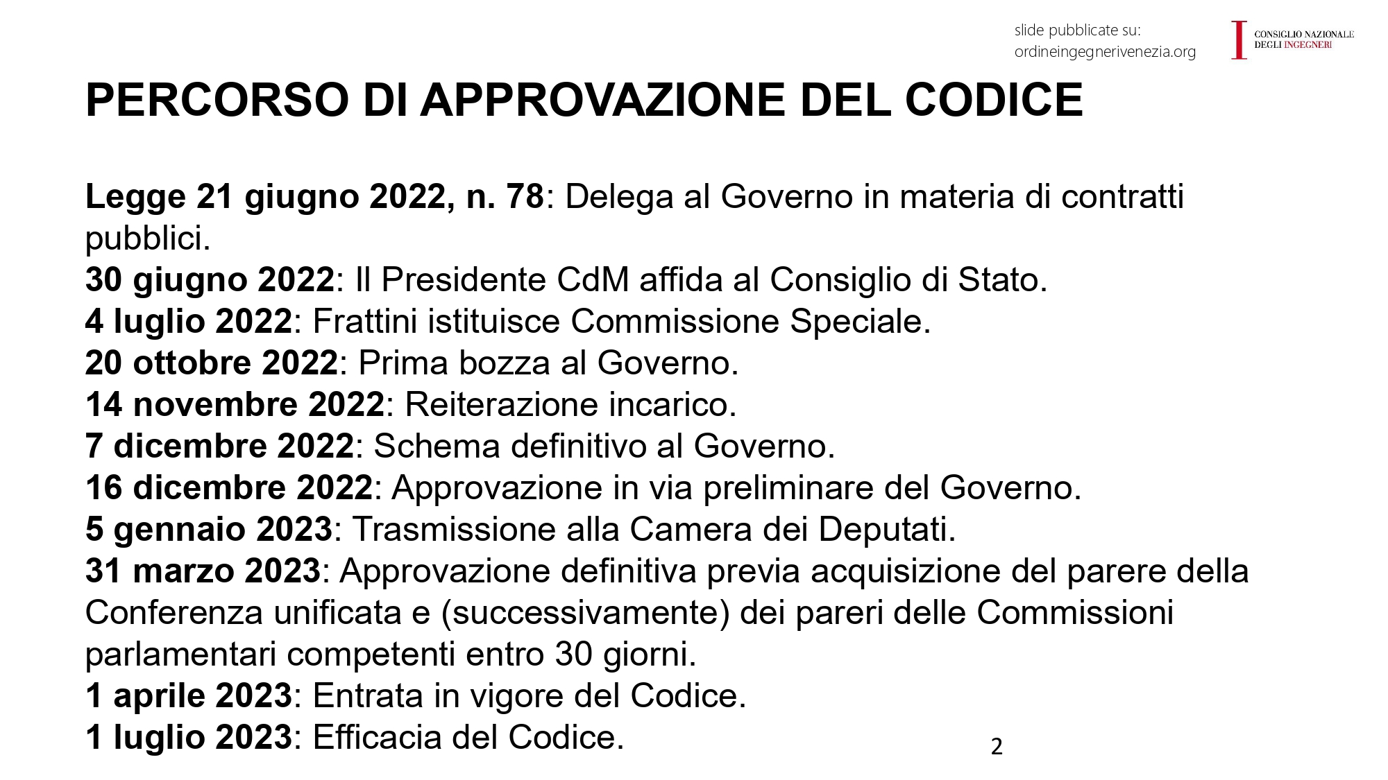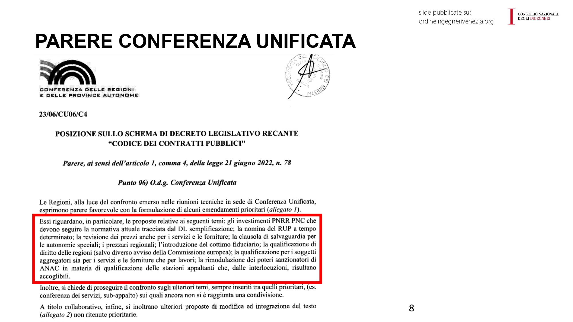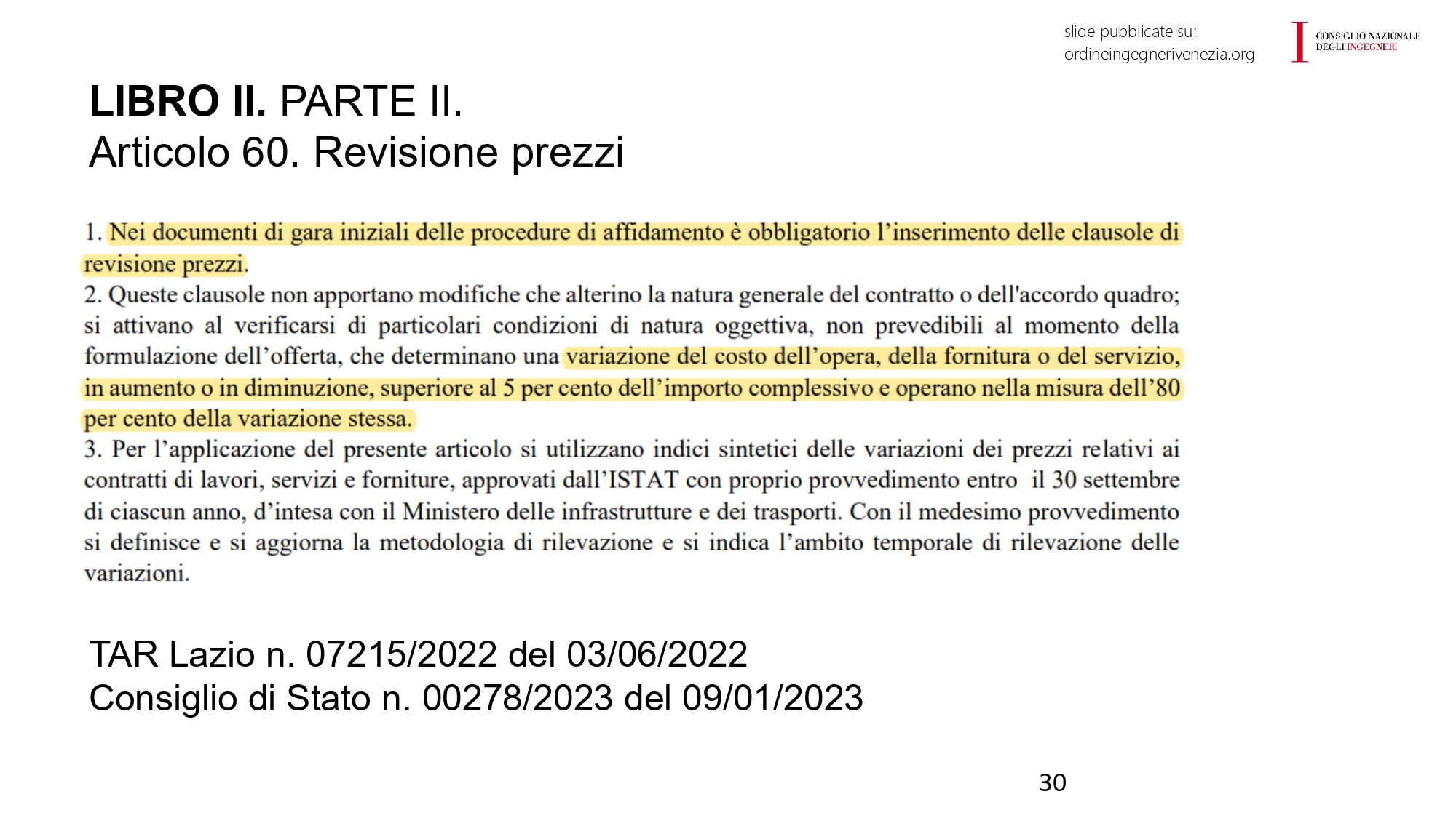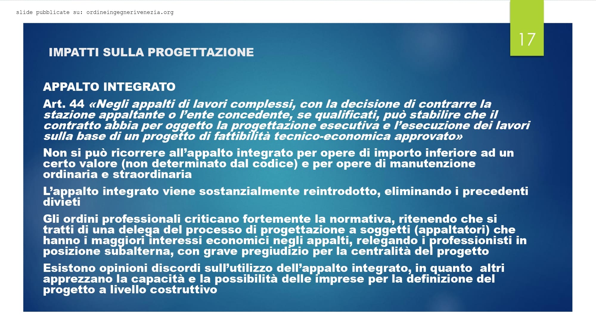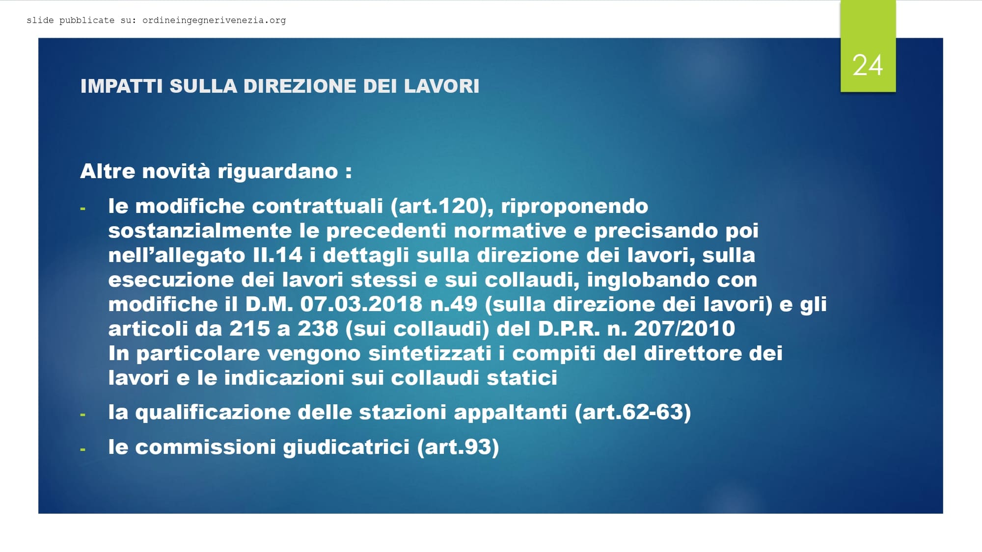 Proponiamo le slide (in file pdf e galleria immagini) con un primo video di sintesi del Convegno sul Nuovo Codice dei Contratti Pubblici, organizzato il 10 marzo 2023 dall’Ordine Ingegneri Venezia insieme al Collegio Ingegneri Venezia e la Fondazione Ingegneri Veneziani.