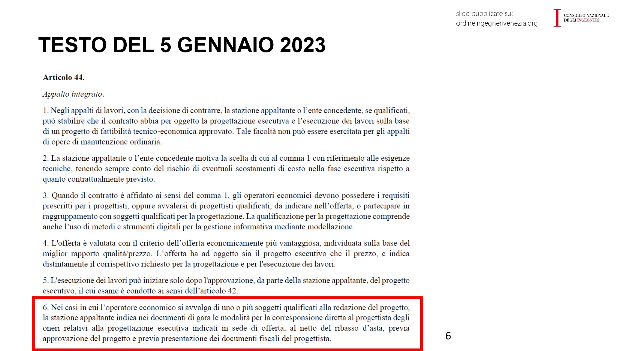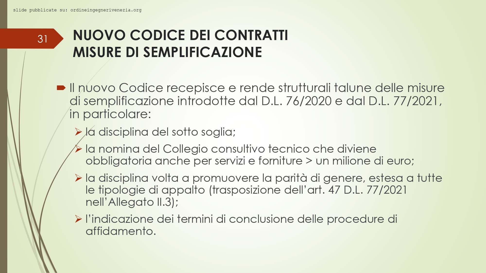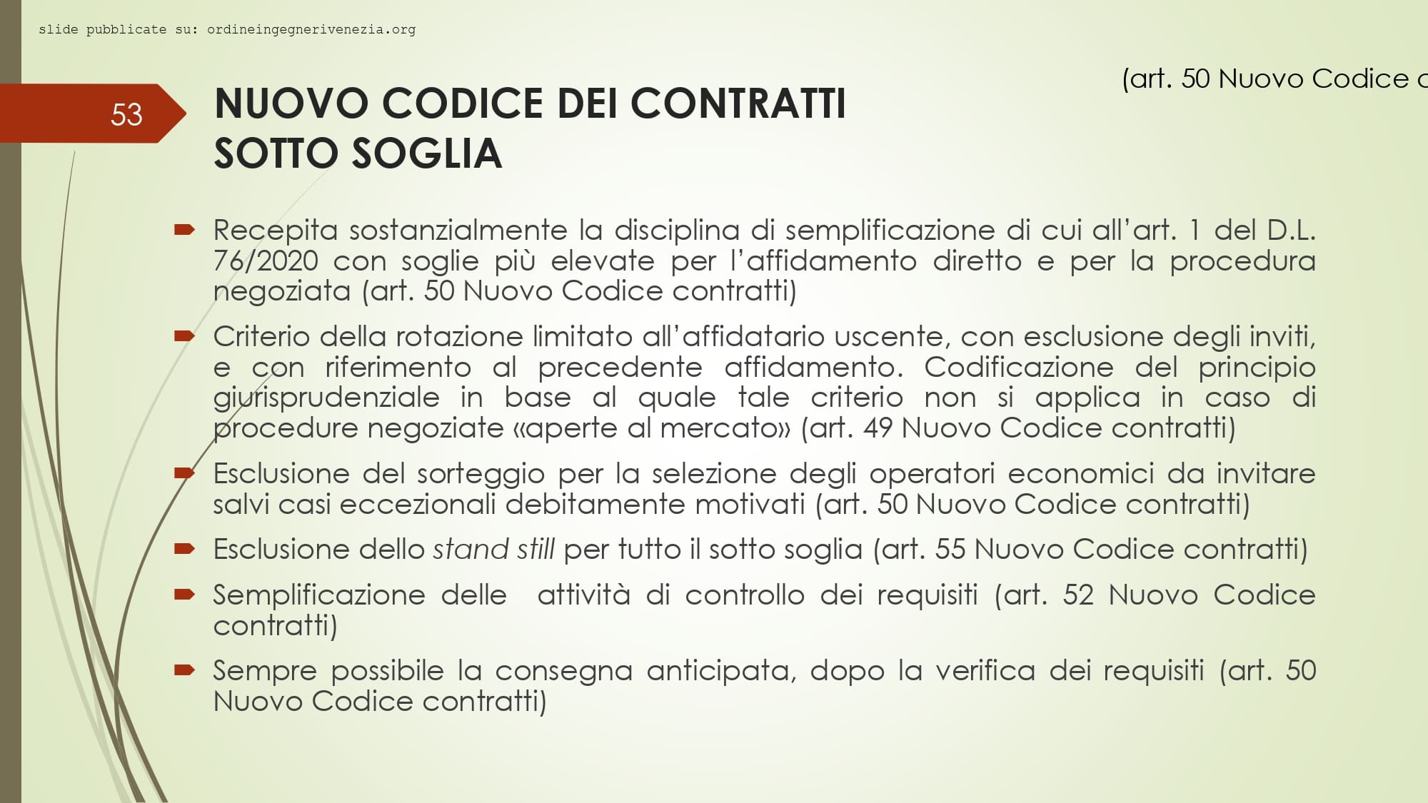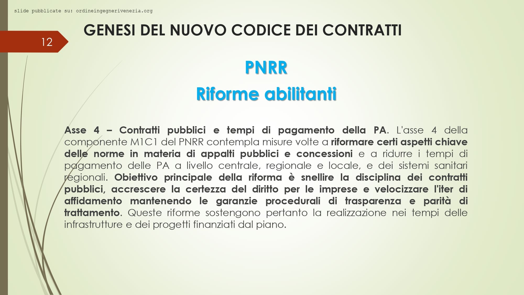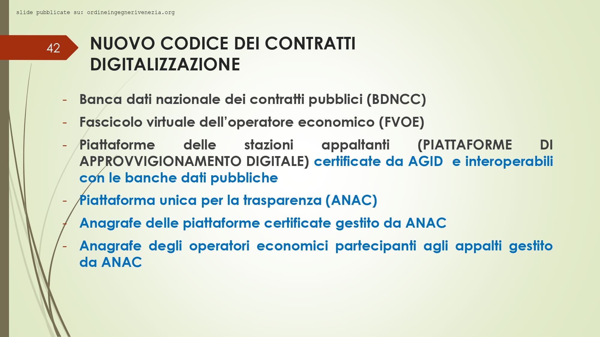 Proponiamo le slide (in file pdf e galleria immagini) con un primo video di sintesi del Convegno sul Nuovo Codice dei Contratti Pubblici, organizzato il 10 marzo 2023 dall’Ordine Ingegneri Venezia insieme al Collegio Ingegneri Venezia e la Fondazione Ingegneri Veneziani.
