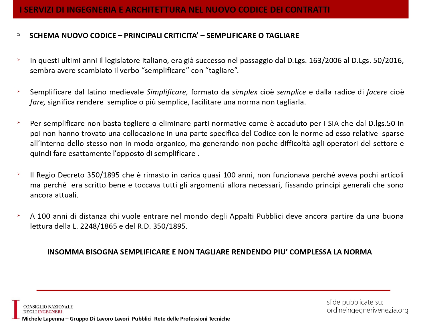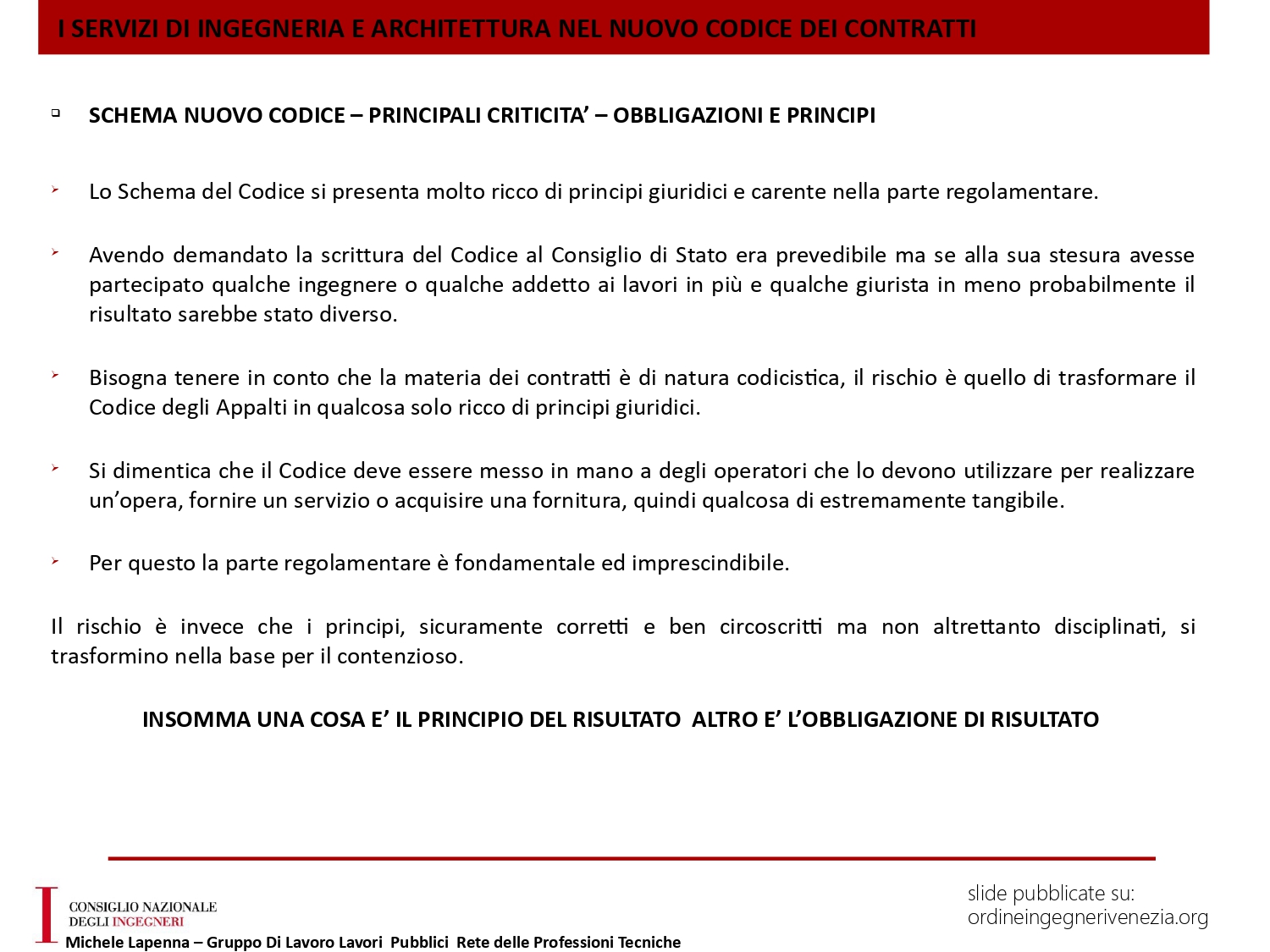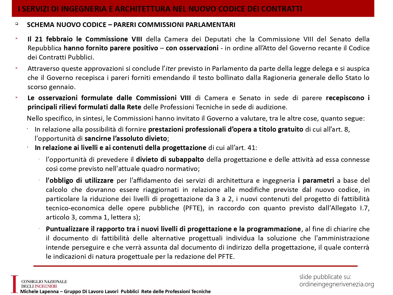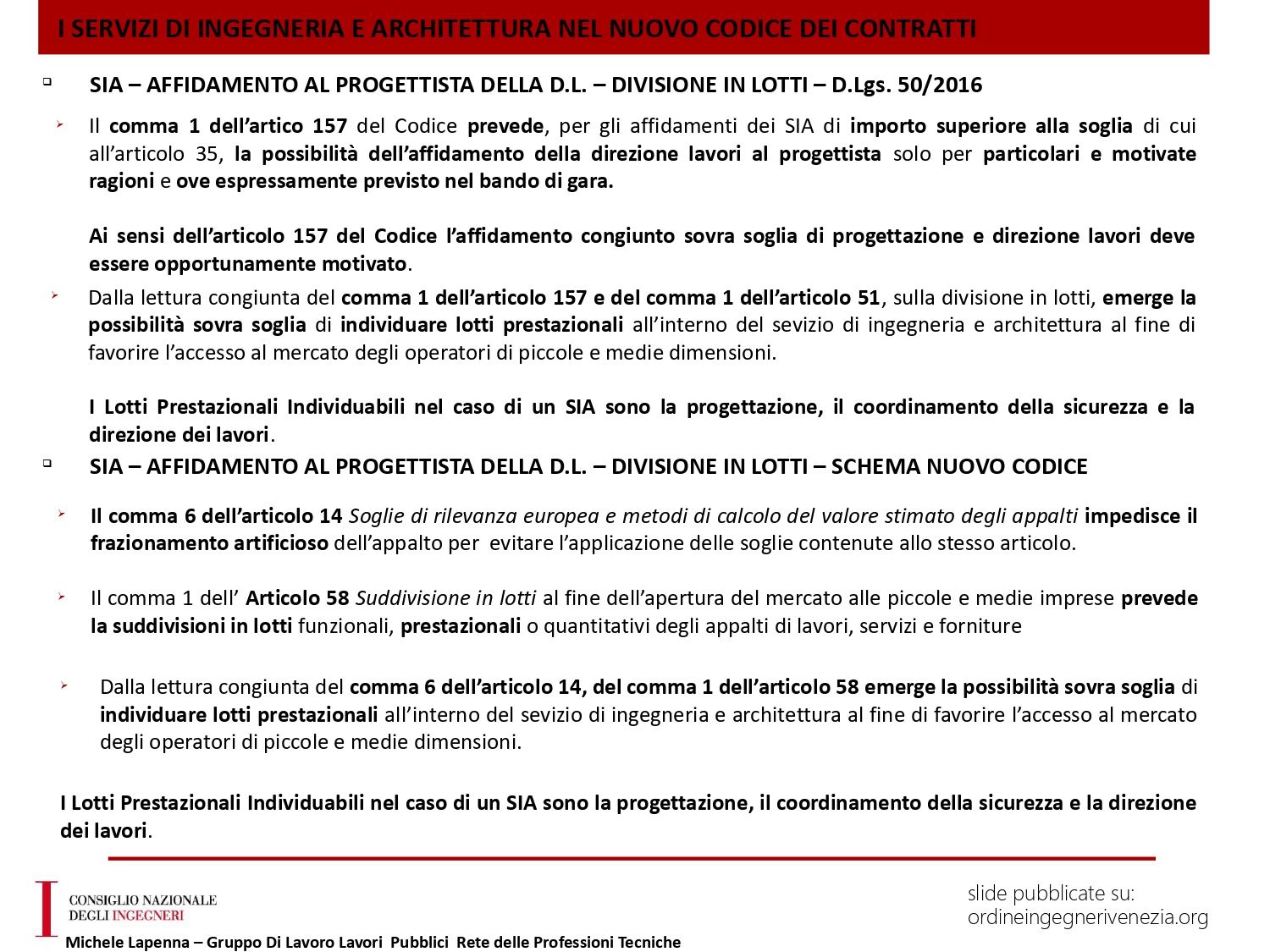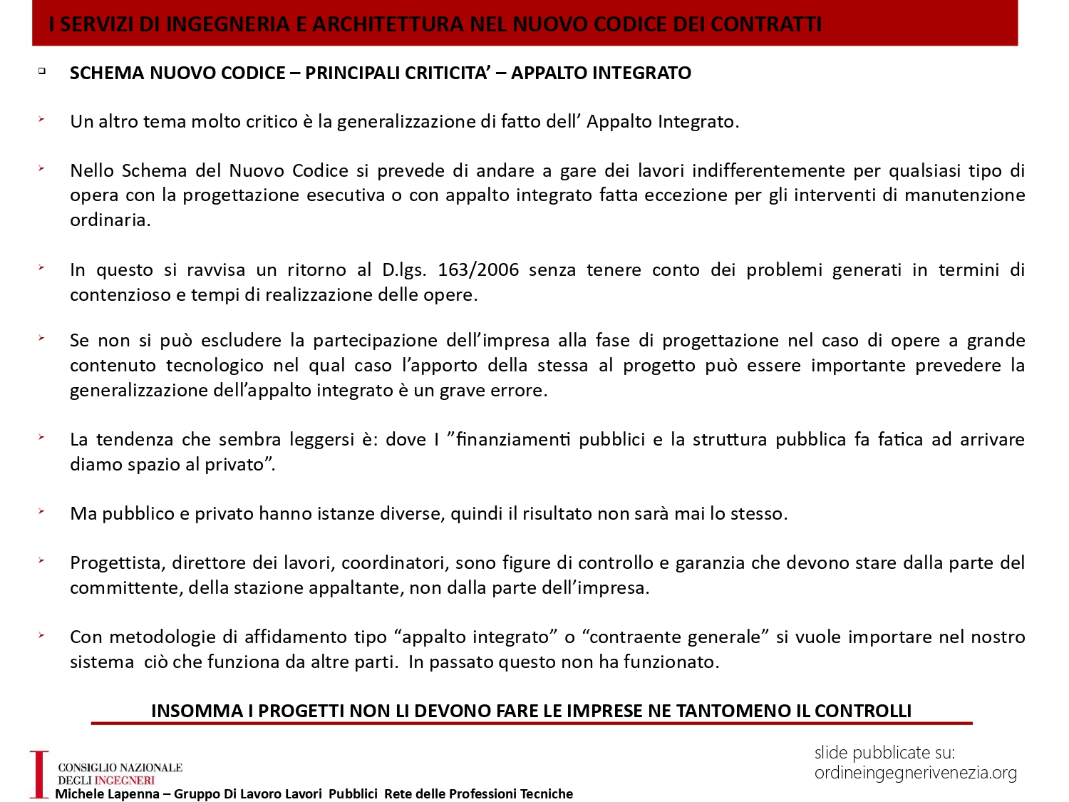 Ing. Michele LAPENNA – Coordinatore G.d.L. Lavori Pubblici Rete delle Professioni Tecniche