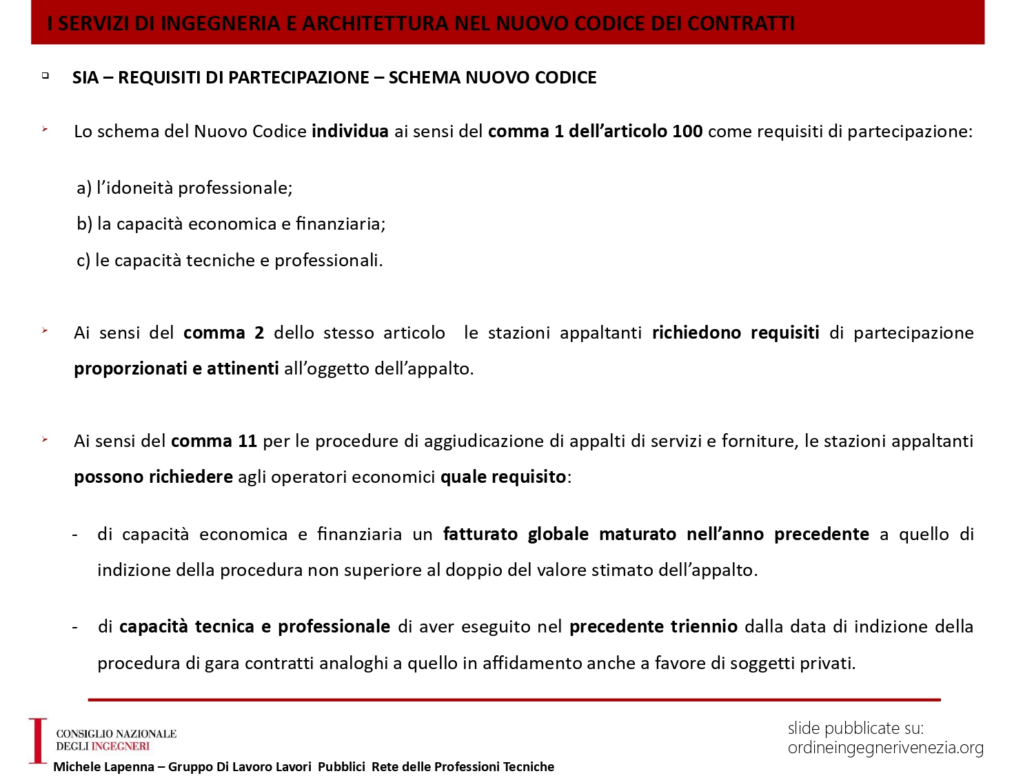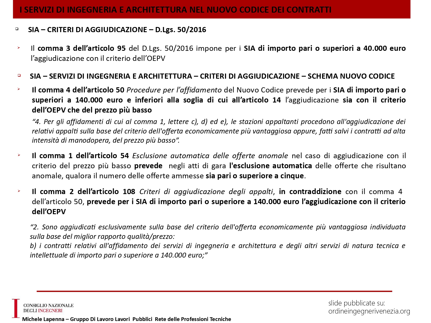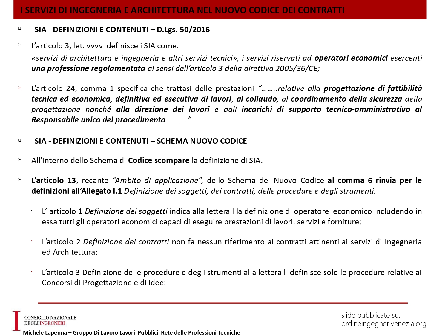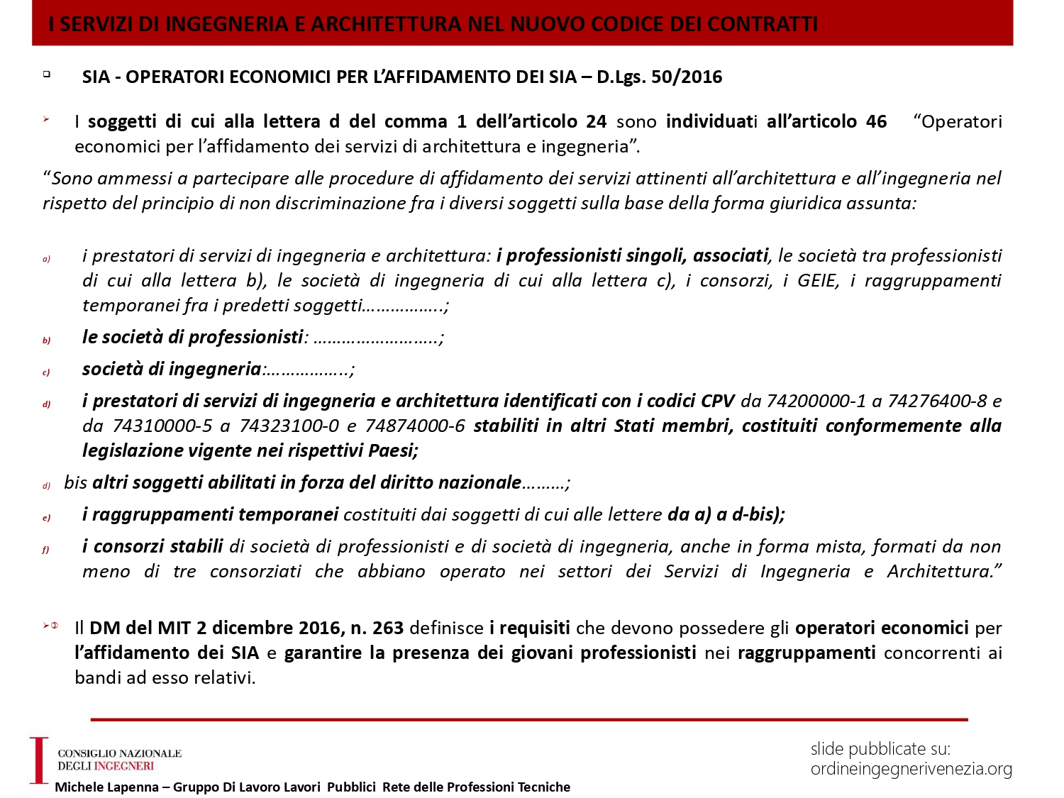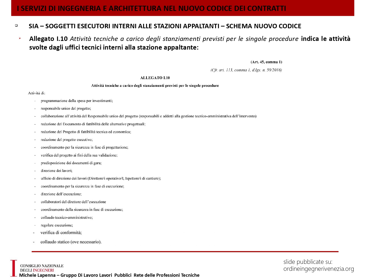 Ing. Michele LAPENNA – Coordinatore G.d.L. Lavori Pubblici Rete delle Professioni Tecniche