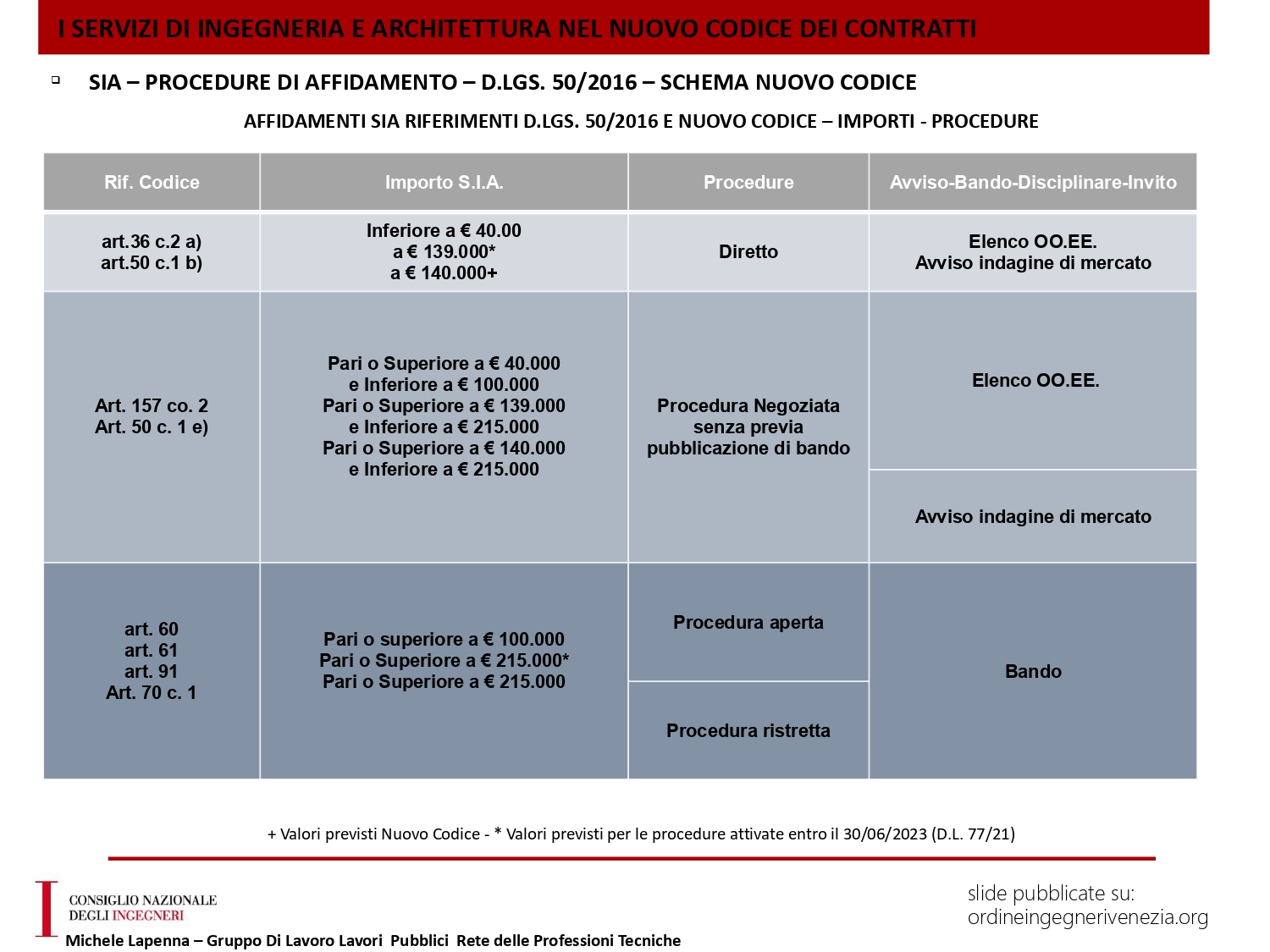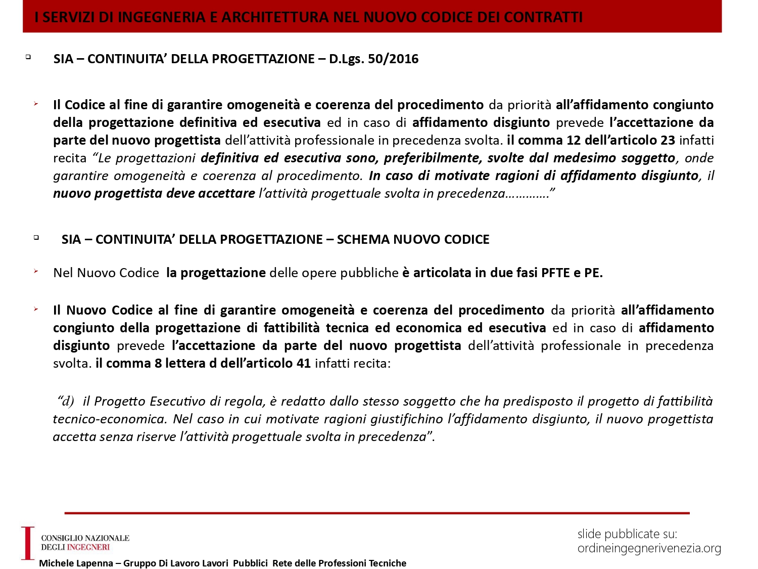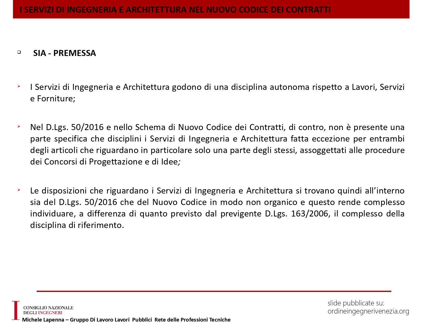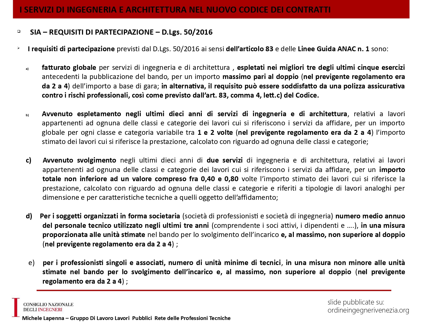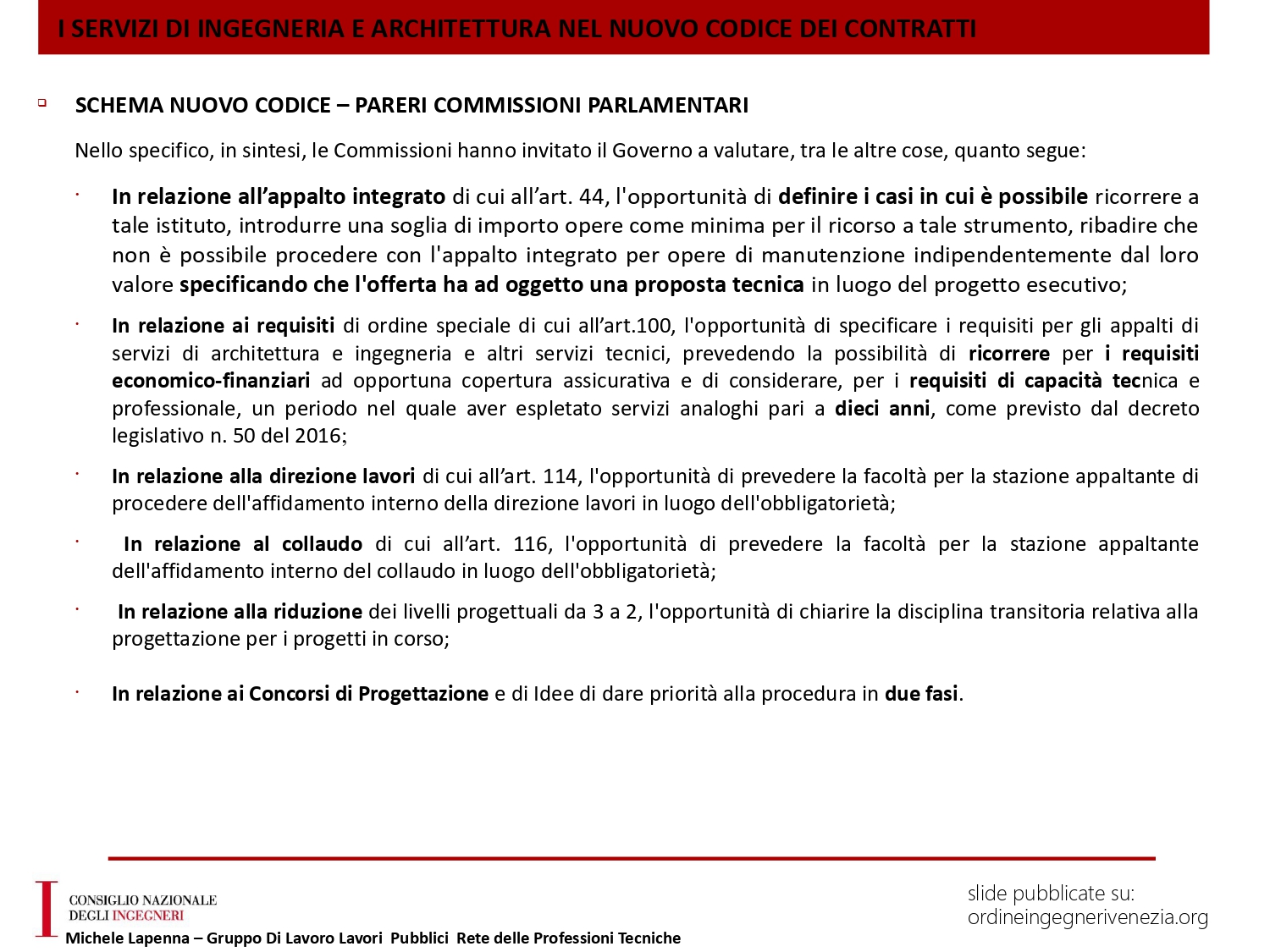 Ing. Michele LAPENNA – Coordinatore G.d.L. Lavori Pubblici Rete delle Professioni Tecniche