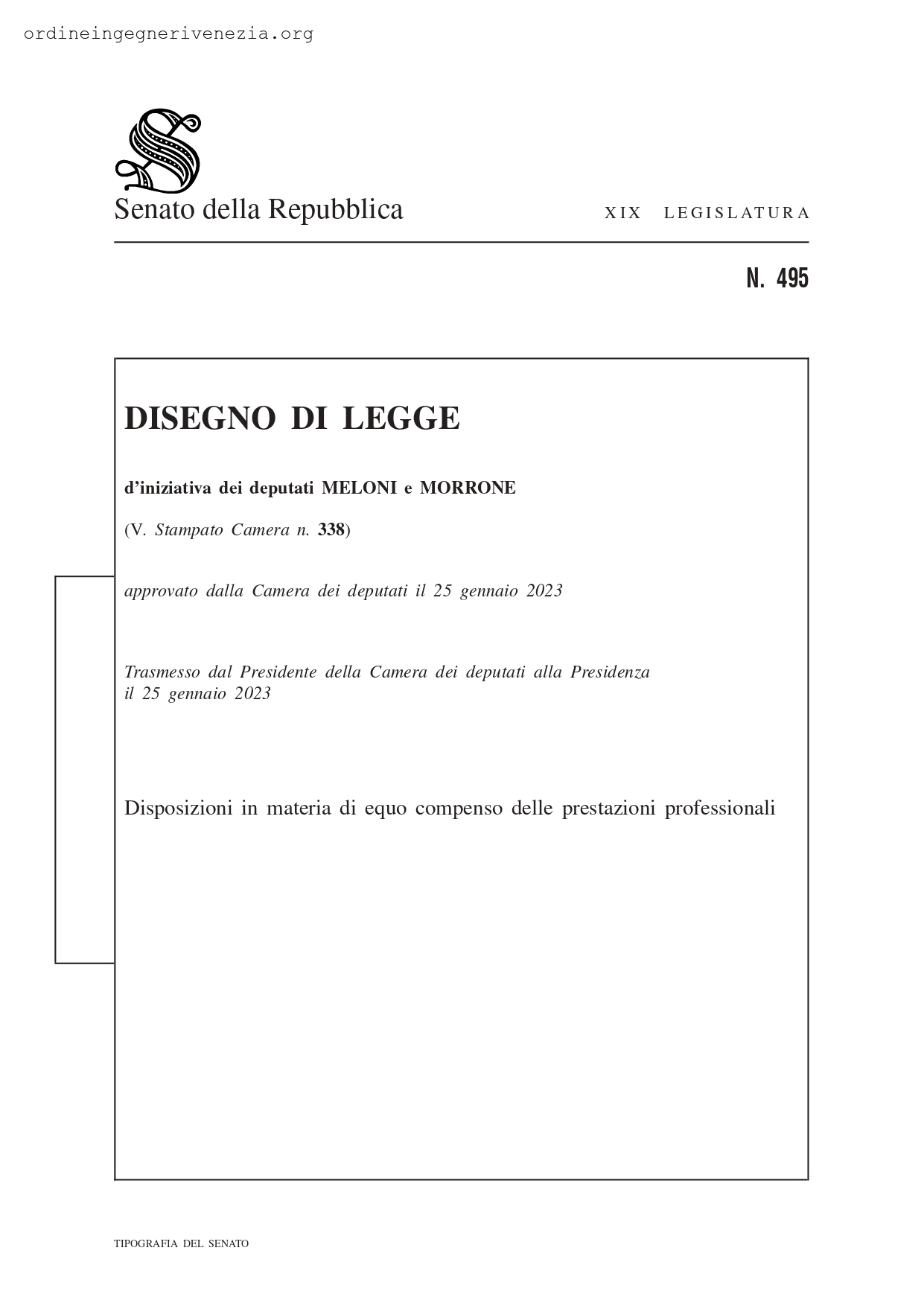 L’Assemblea ha approvato all’unanimità, dalla sede redigente, il ddl 495, Disposizioni in materia di equo compenso delle prestazioni professionali. Fonte: senato.it. In ragione di una piccola modifica di coordinamento, il testo torna alla Camera dei deputati.