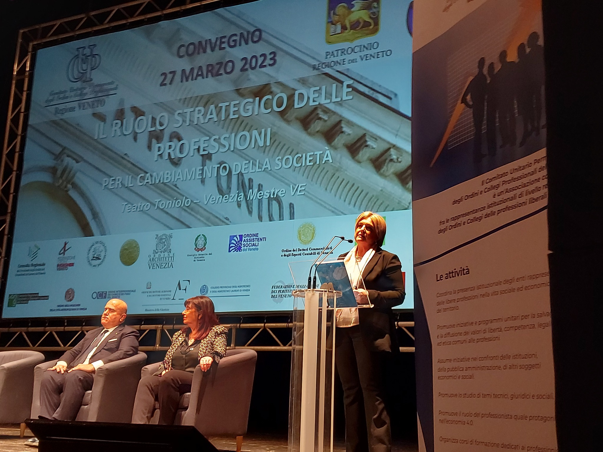 Ha riscosso notevole successo di partecipazione e contenuti l’evento organizzato dal CUP Veneto il 27 marzo 2023 al Teatro Toniolo di Venezia Mestre. Il Comitato Unitario Permanente regionale che riunisce Ordini e Collegi professionali della regione è presieduto da Patrizia Gobat. Tra gli oltre 500 presenti molti ingegneri. Alla presenza del ministro del Lavoro Marina Elvira Calderone sono intervenuti il Presidente FOIV Paolo Gasparetto e il nostro Presidente Mariano Carraro.