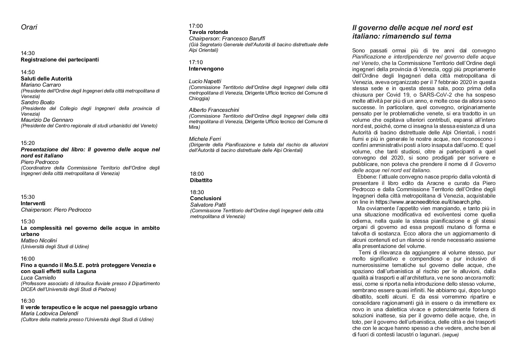 - Salvatore Patti (Commissione Territorio dell’Ordine degli Ingegneri della città metropolitana di Venezia)