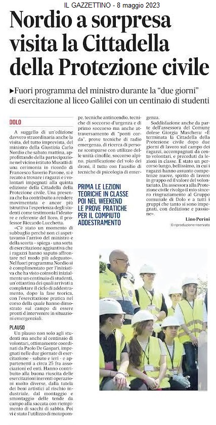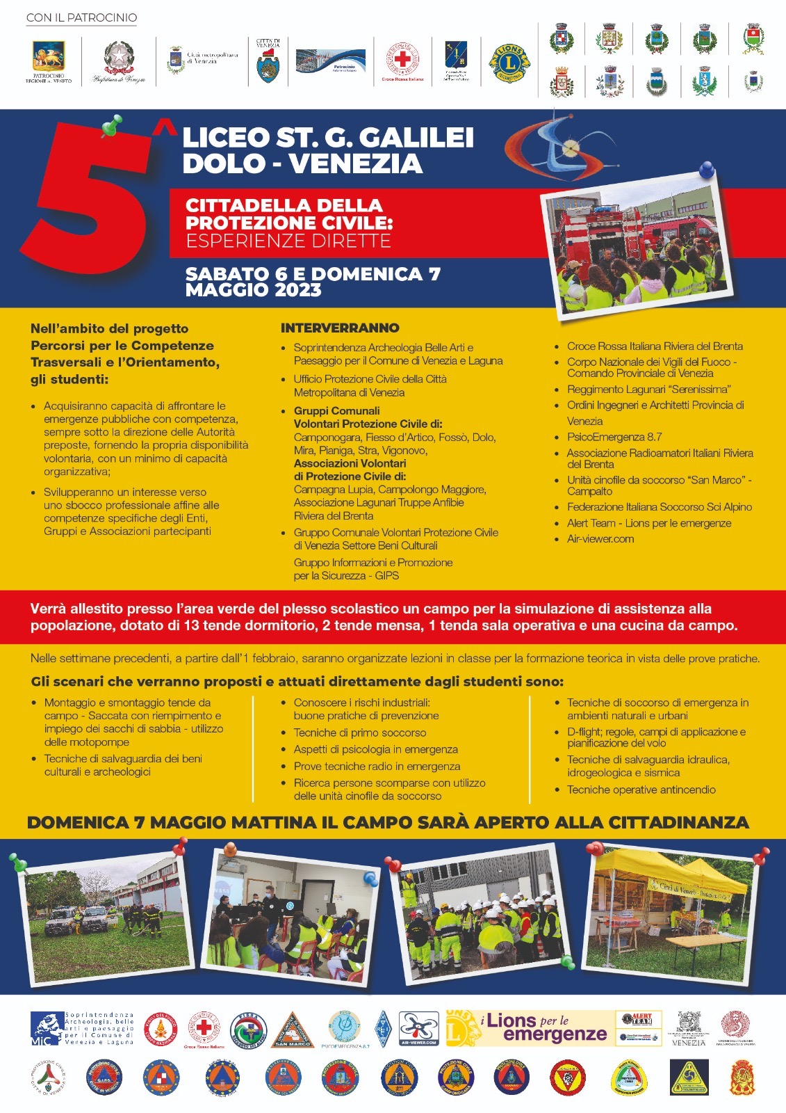 5^ Edizione “Cittadella della Protezione Civile: Esperienze Dirette” al Liceo Scientifico Galilei di Dolo che ha coinvolto circa un centinaio di studenti e ha visto la partecipazione di circa 25 enti e associazioni del territorio e non solo.