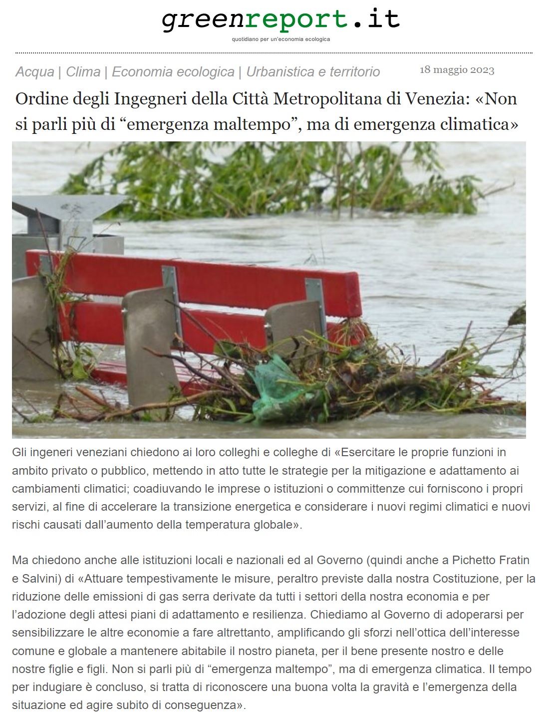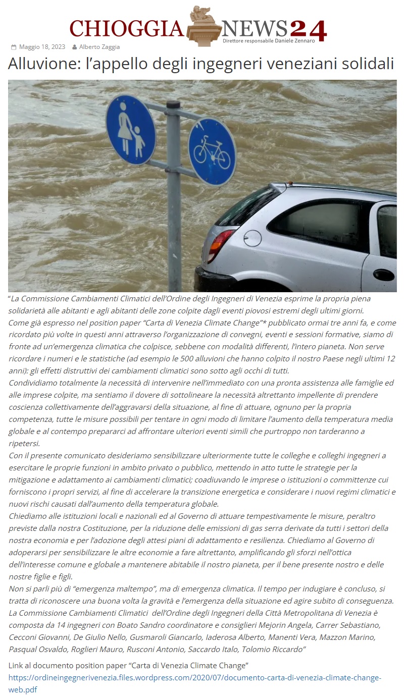 L’Appello degli ingegneri di Venezia sul tema dell’alluvione è stato raccolto da molte parti. Abbiamo il piacere di condividere il report delle pubblicazioni. Grazie a RAI Radio 3, VENETO ECONOMY, éNordEst, La Nuova Venezia, greenreport, CHIOGGIA NEWS 24.