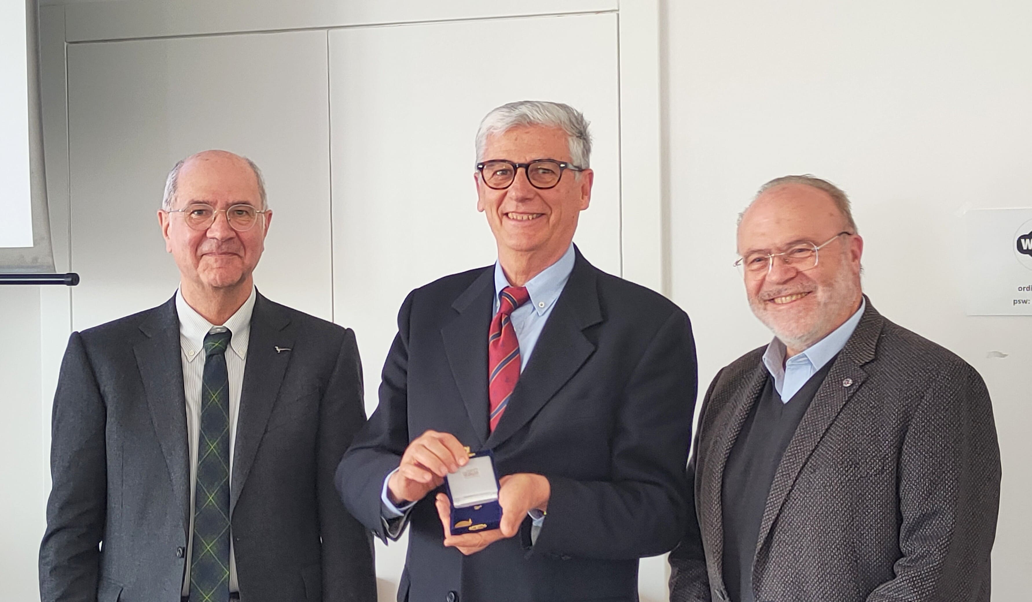 Il Presidente dell’Ordine Ingegneri Venezia ing. Mariano Carraro ha premiato oggi 23 marzo 2024, presso la sede dell’Ordine insieme al Presidente del Collegio ing. Sandro Boato, 11 ingegneri illustri con l’osella d’oro per i 50 anni dalla laurea: Leandro De Rossi, Giuseppe Lapis, Renzo Mazzon, Luigi Muffato, Maria Giovanna Piva, Maurizio Pozzato, Antonio Rusconi, Marco Salmini, Giovanni Sandri, Filippo Valenti, Flavio Zanchettin.