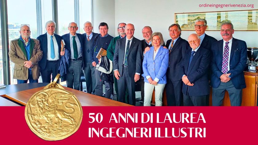 Il Presidente dell’Ordine Ingegneri Venezia ing. Mariano Carraro ha premiato oggi 23 marzo 2024, presso la sede dell’Ordine insieme al Presidente del Collegio ing. Sandro Boato, 11 ingegneri illustri con l’osella d’oro per i 50 anni dalla laurea: Leandro De Rossi, Giuseppe Lapis, Renzo Mazzon, Luigi Muffato, Maria Giovanna Piva, Maurizio Pozzato, Antonio Rusconi, Marco Salmini, Giovanni Sandri, Filippo Valenti, Flavio Zanchettin.