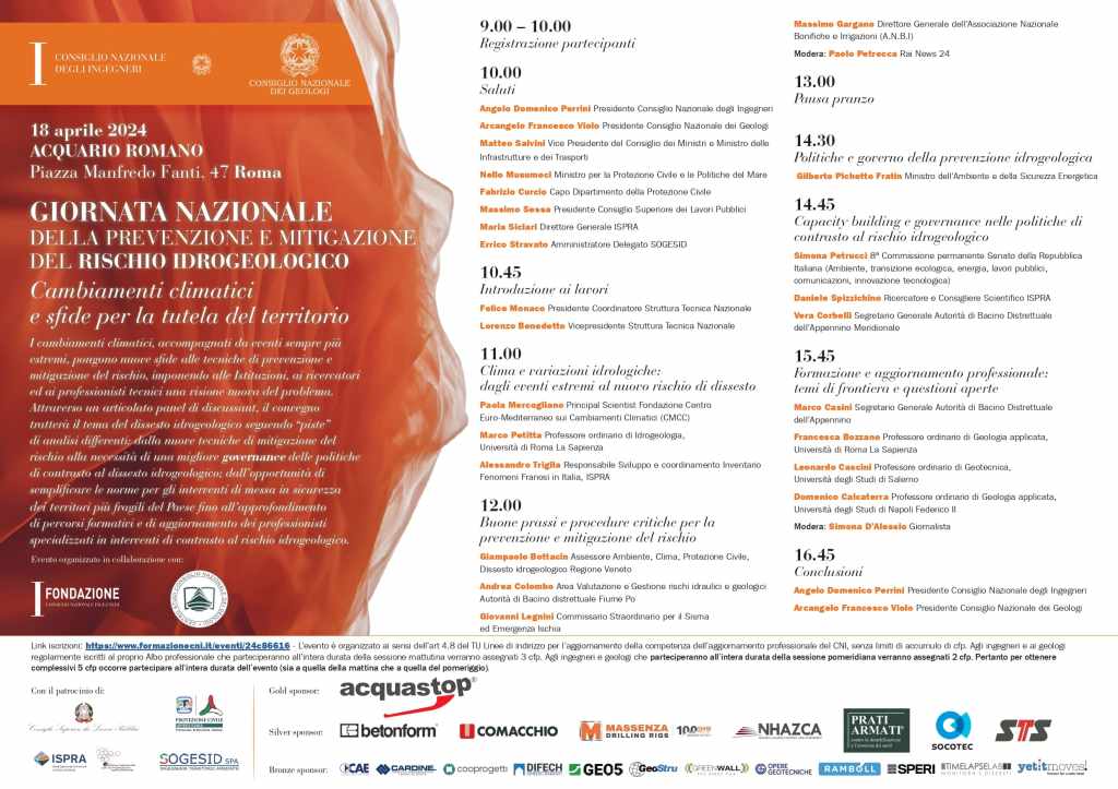 La Giornata Nazionale rappresenta un’occasione unica per ingegneri, geologi, decisori politici, ricercatori e professionisti del settore di confrontarsi, aggiornarsi e lavorare insieme per un futuro più sicuro.