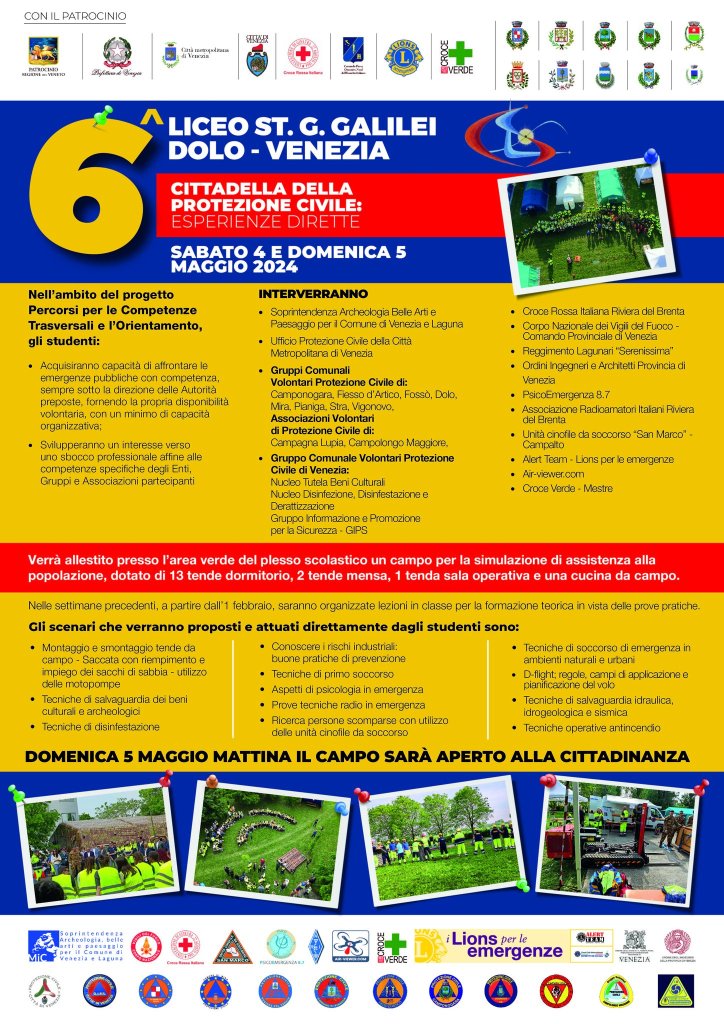 “Il prossimo fine settimana si terrà la 6^ edizione della “Cittadella della Protezione Civile” – spiega la Vicepresidente dell’Ordine Ingegneri Venezia ing. Francesca Domeneghetti – progetto nato dal prof. Riccardo Lucchetta del Liceo G. Galilei di Dolo che vede coinvolti 85 ragazzi alle prese con esperienze dirette di previsione, prevenzione, soccorso, al fine di apprendere e stimolare la capacità di affrontare le emergenze. I ragazzi saranno supportati dalle associazioni volontarie di Protezione Civile del territorio integrate da altre realtà istituzionali quali i Vigili del Fuoco, l’Esercito Italiano e la Soprintendenza del Comune di Venezia.
