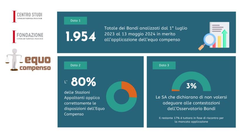 Il Consiglio Nazionale degli Ingegneri ha reso noto (scarica la Circolare in formato PDF) i risultati dell’attività svolta dal suo Osservatorio Bandi, relativamente al periodo che va dal 1° luglio 2023 al 13 maggio 2024. L’analisi, realizzata dal Centro Studi CNI, ha interessato complessivamente 1954 bandi di gara.