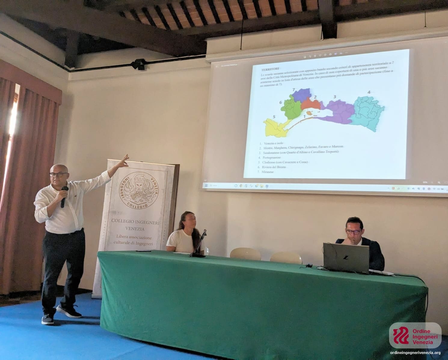 L’evento è stato aperto con gli interventi dell’ing. Mariano Carraro Presidente Ordine Ingegneri Venezia, ing. Luana Scarpa e ing, Sara Campaci della Commissione Giovani Ingegneri e Consigliere dell’Ordine, ing. Paolo Donelli Vice Presidente Collegio Ingegneri Venezia.