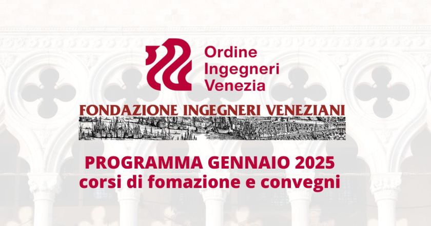 Corsi di formazione e convegni gennaio 2025 proposti dall’Ordine Ingegneri Venezia in collaborazione con la Fondazione Ingegneri Veneziani