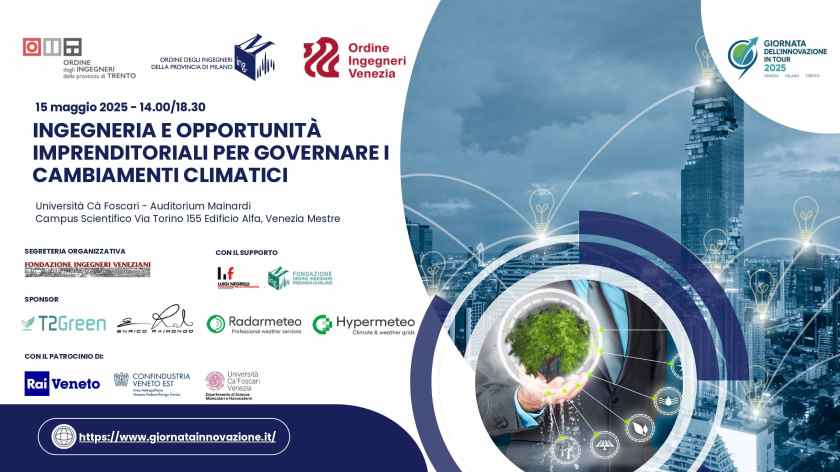 Si parte da Venezia il 15 maggio con l’evento che si terrà a Mestre dal titolo “Ingegneria e opportunità imprenditoriali per governare i Cambiamenti Climatici”.