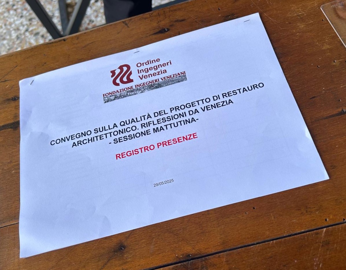 L’evento è stato promosso dall’Ordine degli Ingegneri di Venezia e dall’Ordine degli Architetti, Pianificatori, Paesaggisti e Conservatori della Provincia di Venezia, in collaborazione con la Soprintendenza Archeologia, Belle Arti e Paesaggio per il Comune di Venezia e Laguna, la Società Italiana per il Restauro dell’Architettura, l’Università Iuav di Venezia, la Fondazione Ingegneri Veneziani e la Fondazione Architetti, Pianificatori, Paesaggisti e Conservatori della Provincia di Venezia.