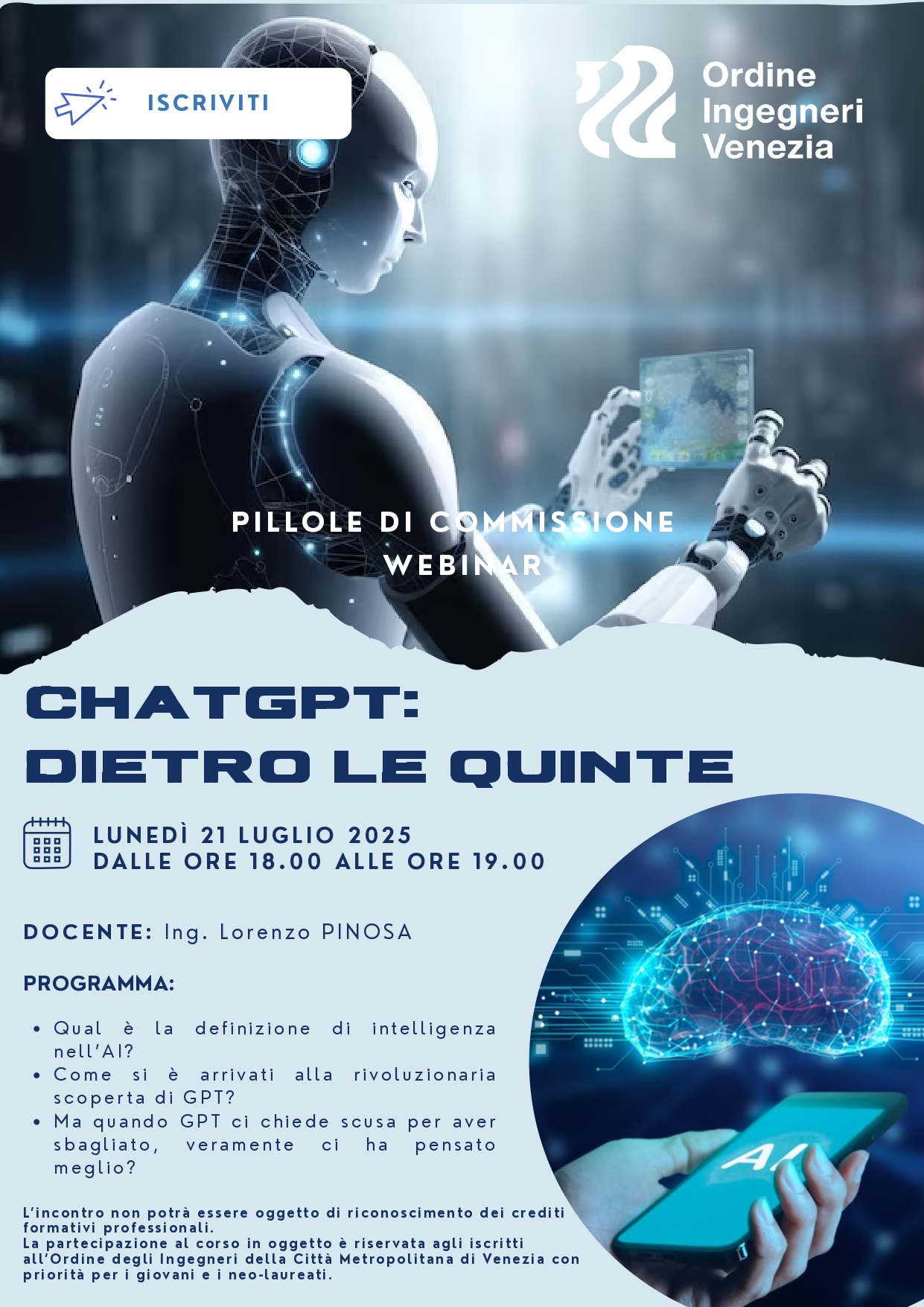 La Commissione Informatica e Telecomunicazioni dell’Ordine Ingegneri Venezia e la Fondazione Ingegneri Veneziani organizzano il webinar gratuito “Pillole di commissione” sul tema: