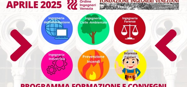 Eventi formativi per l’aggiornamento professionale organizzati dall’Ordine Ingegneri Venezia in collaborazione con la Fondazione Ingegneri Veneziani e altri partner nel mese di Aprile 2025. INFO