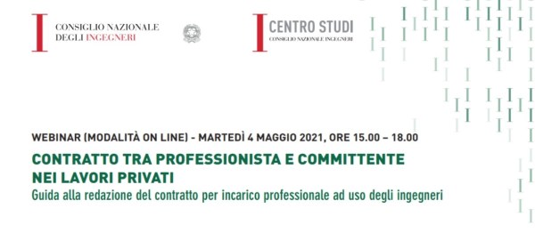 Martedì 4 maggio 2021 dalle 15:00 alle 18:00, si terrà il webinar di aggiornamento professionale dal titolo “Contratto tra professionista e committente nei lavori privati.