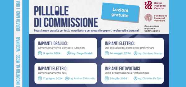 “È un grande piacere per l’Ordine Ingegneri Venezia – sottolinea il Presidente ing. Mariano Carraro – presentare assieme alla Fondazione Ingegneri Veneziani l’iniziativa mini-corsi “Pillole